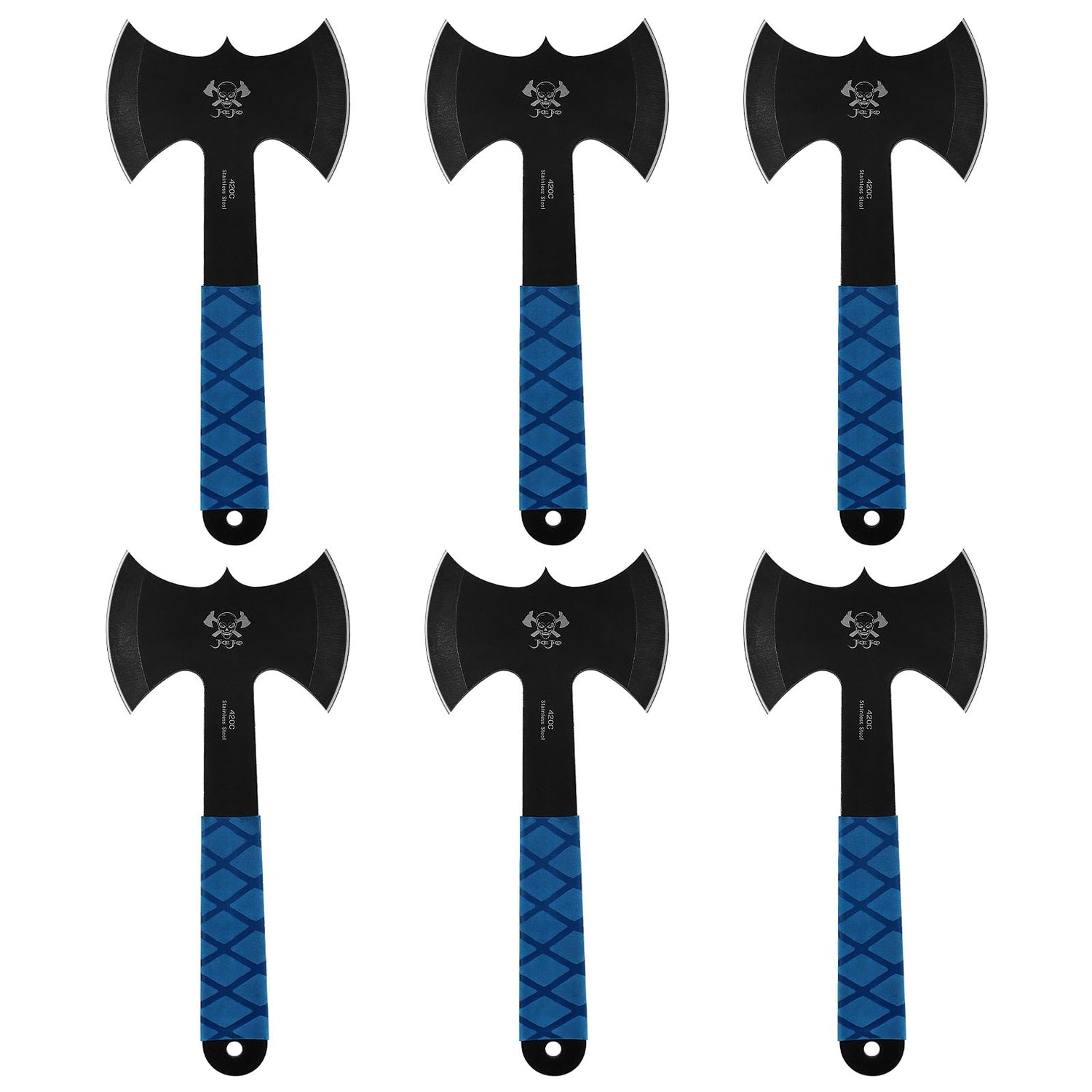 JXE JXO Throwing Axes and Tomahawks Set 6Pack, Double Bite Hawks, Design for Throwing Recreation and Fun