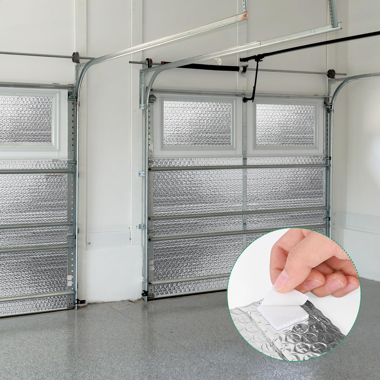 - Double Bubble Layers: This is a true double-sided aluminum foil double bubble insulation roll, 0.24 inch thick. The garage door insulation kit effectively insulates roofs, or windows, blocking heat in summer and cold air in winter while maintaining an optimal temperature regardless of outdoor conditions. It provides effective insulation