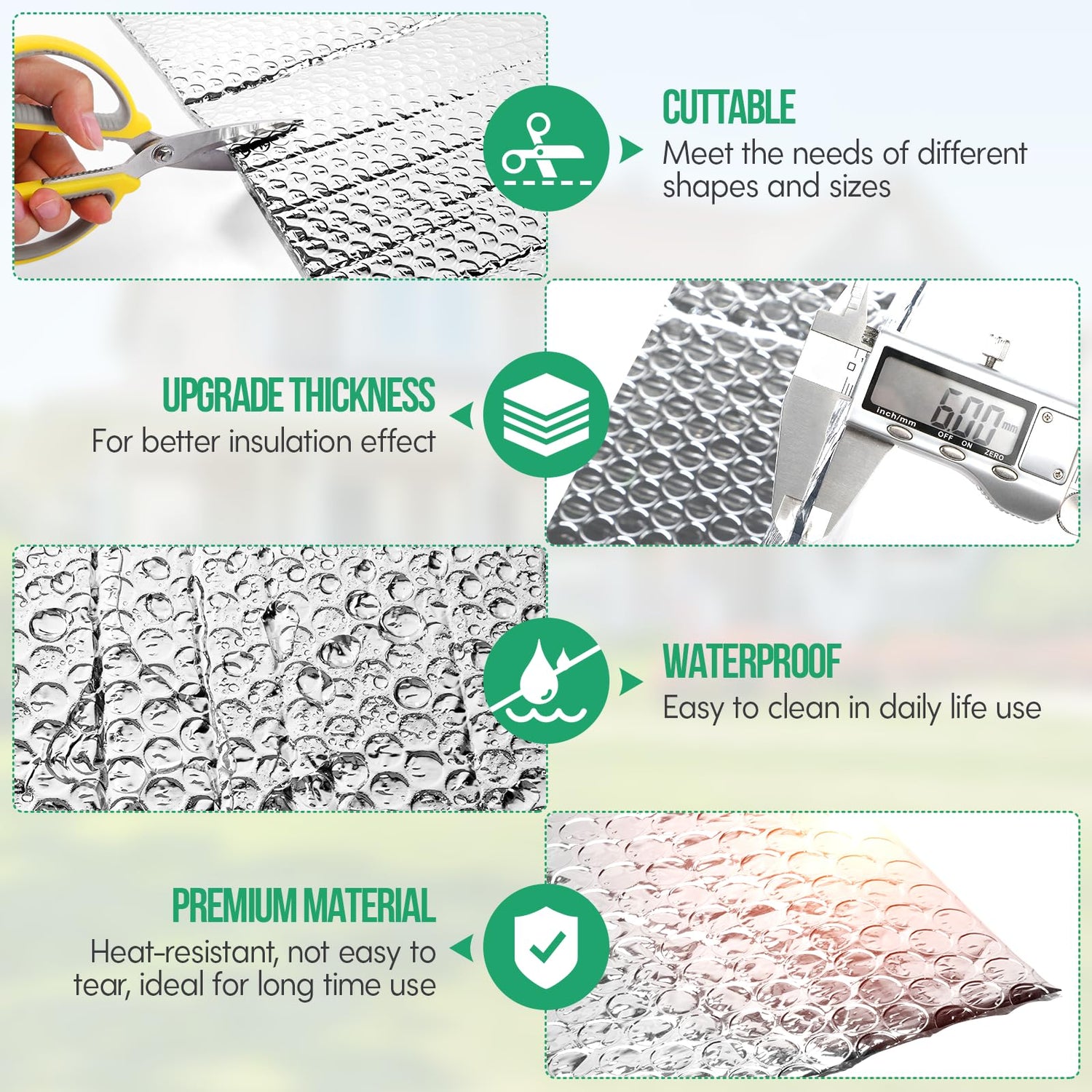 - Easy Installation: You will get 16 pcs of bubble insulation sheets with 120 pcs of self-adhesive pads for better installation and fixation to prevent falling off. Due to transportation restrictions, the insulation film will be shipped folded, and there may be some creases, but it will not affect usage, and the creases will rebound and repair over time