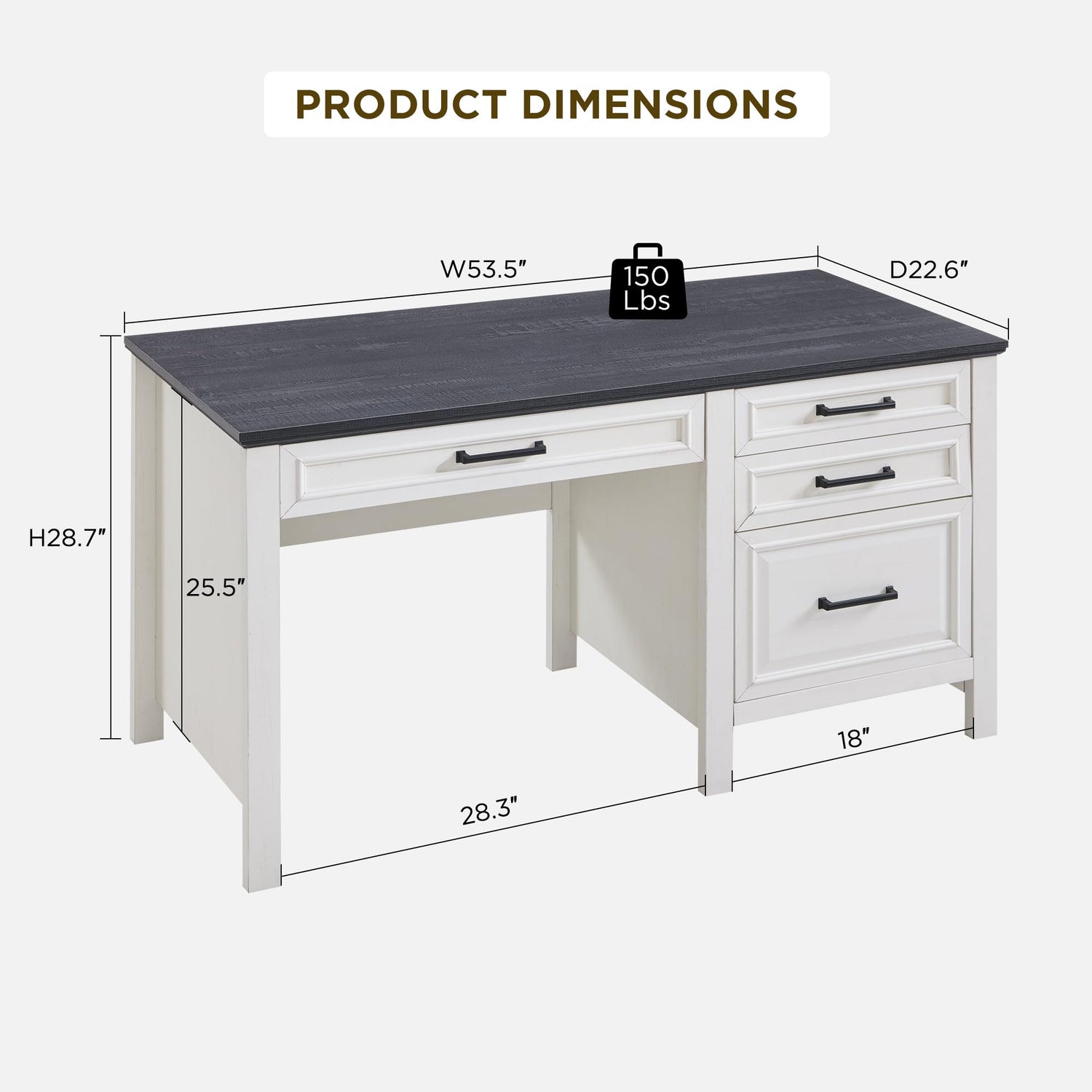 JXQTLINGMU 53INCH Home Office Desk, Modern Farmhouse Computer Desk with File Cabinet Letter T4 F4 Legal, Study Writing Desk, Off White