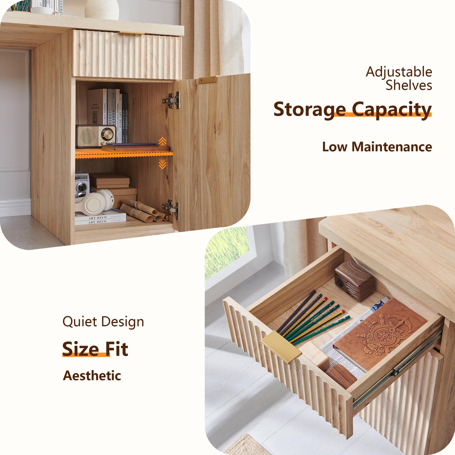 JXQTLINGMU 60" Modern Executive Desk with Storage, Wood Home Office Desk with Drawer & Cabinet, Fluted Computer Writing Desk for Study, Living Room, Bedroom, Antique White