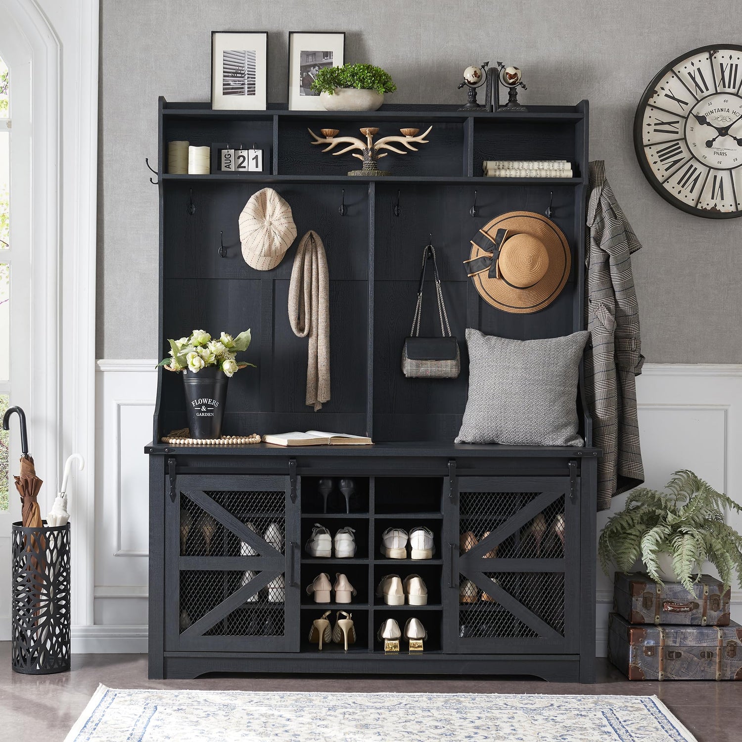 - Ample Storage: In addition to offering 20 shoe storage cubbies and 12 double coat hooks, this hall tree is equipped with three overhead storage compartments and a spacious bench top for storing your belongings or decor. This entryway bench with a coat rack and shoe storage, allowing you to neatly store your coats, hats, shoes, and other belongings. Keep your entryway clutter-free and organized.