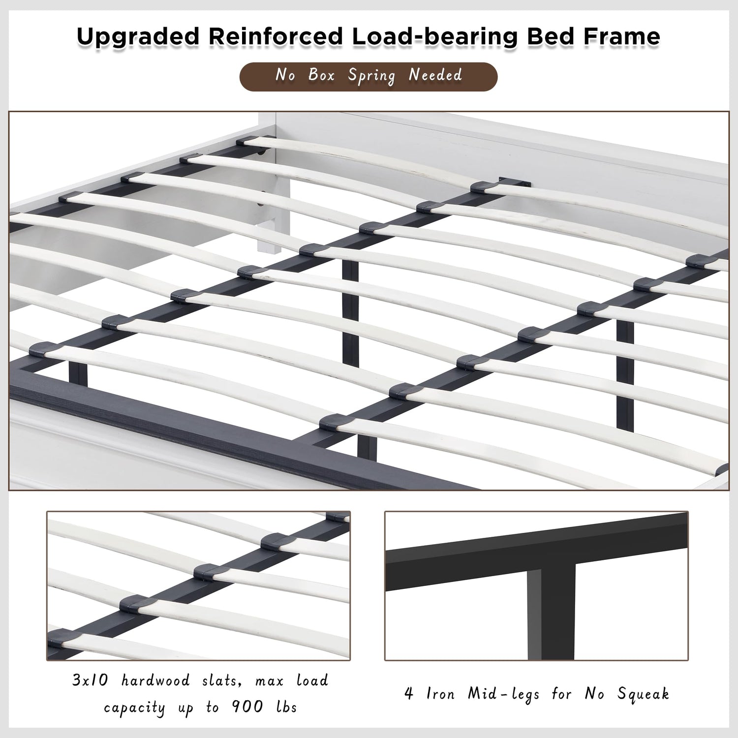 JXQTLINGMU Farmhouse King Wood Bed Frame with 52" Tall Headboard & Footboard, Platform Bedframe with Hidden Storage Drawers, Noiseless, No Box Spring Required, Antique White Color