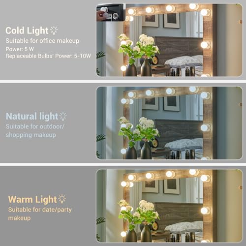- Hollywood Makeup Mirror :Equipped with three types of lighting for the perfect makeup application(warm white & cold White & warm yellow), ensuring you look flawless every time.