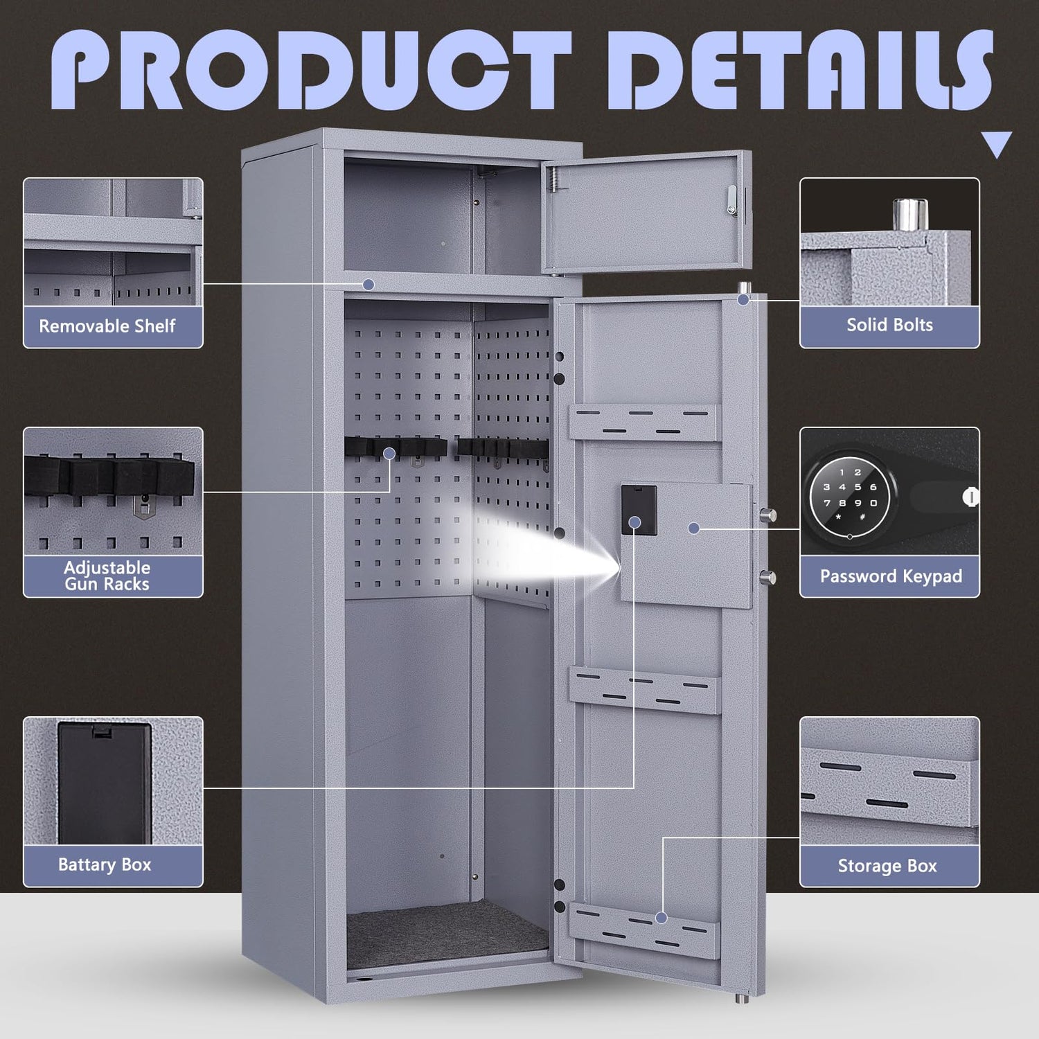 - ✅【Assemblable + Double Storage Space Gun Safe】:The gun safe is assemble so you can use it as needed and disassemble it when not in use, making it easy to save space; in addition the gun cabinet has a double storage design with separate storage space at the top which you can use to store handguns or other valuables.