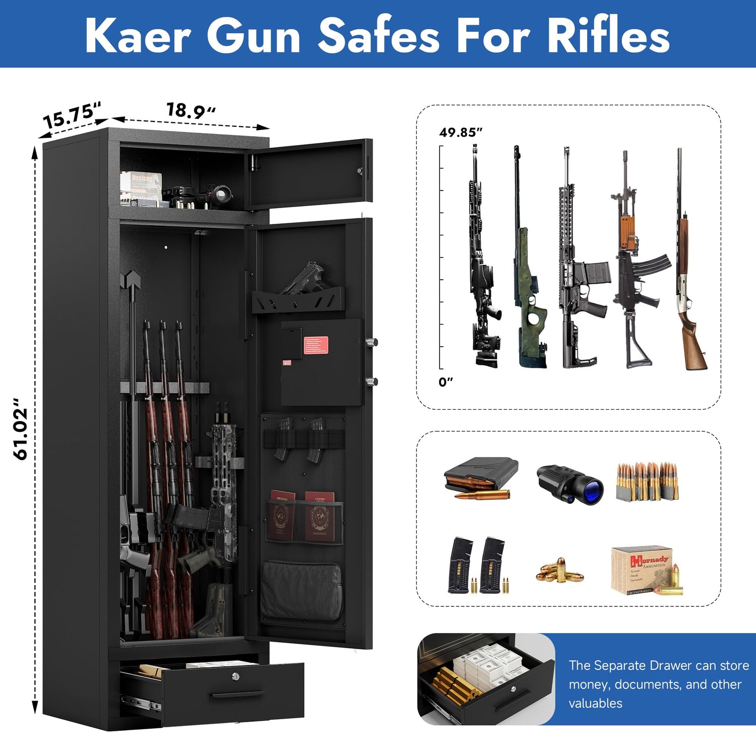 KAER 10-15 Gun Safes for Home Rifle and Pistols, Large Gun Cabinets for Rifles and Shotguns,Gun Rifle Safe with Drawer,Gun & Ammunition Storage & Safes (Assembly Required)