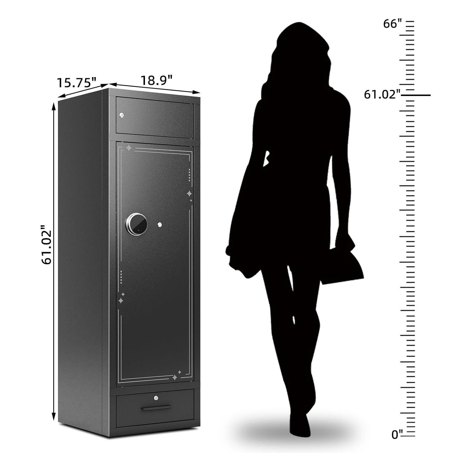 - 【High-Capacity Gun Safe 】 The gun safe external dimensions: 61.02” (H) X 15.75” (D) X 18.9” (W). The maximum gun height that can be accommodated is 43.3‘’;Large gun safe holds up to 15-17 long guns with 3 gun racks.