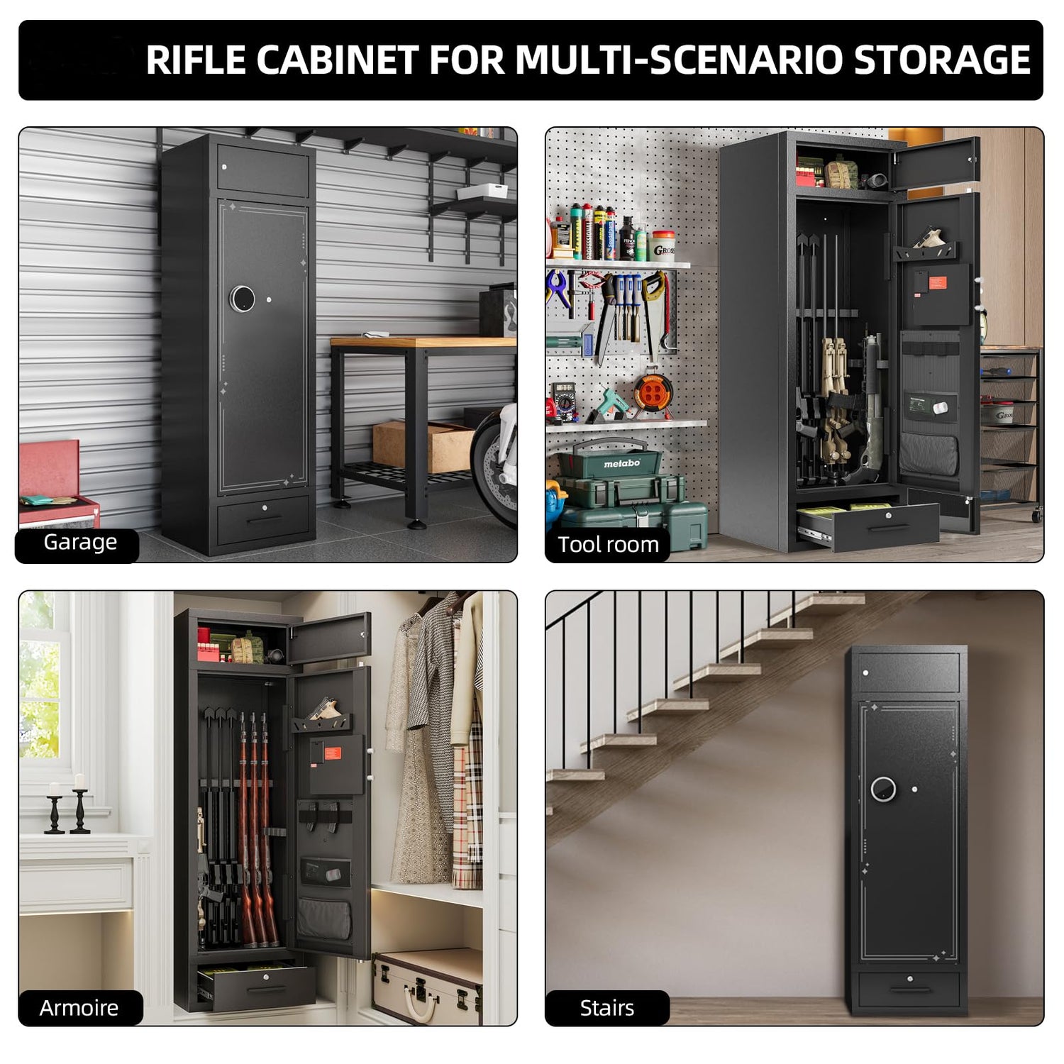 - 【Multi-Functional Gun Safes】This rifle safe is independently designed to store guns and accessories separately. With 3 adjustable shelves inside the cabinet, you can adjust the height and position according to the safes type