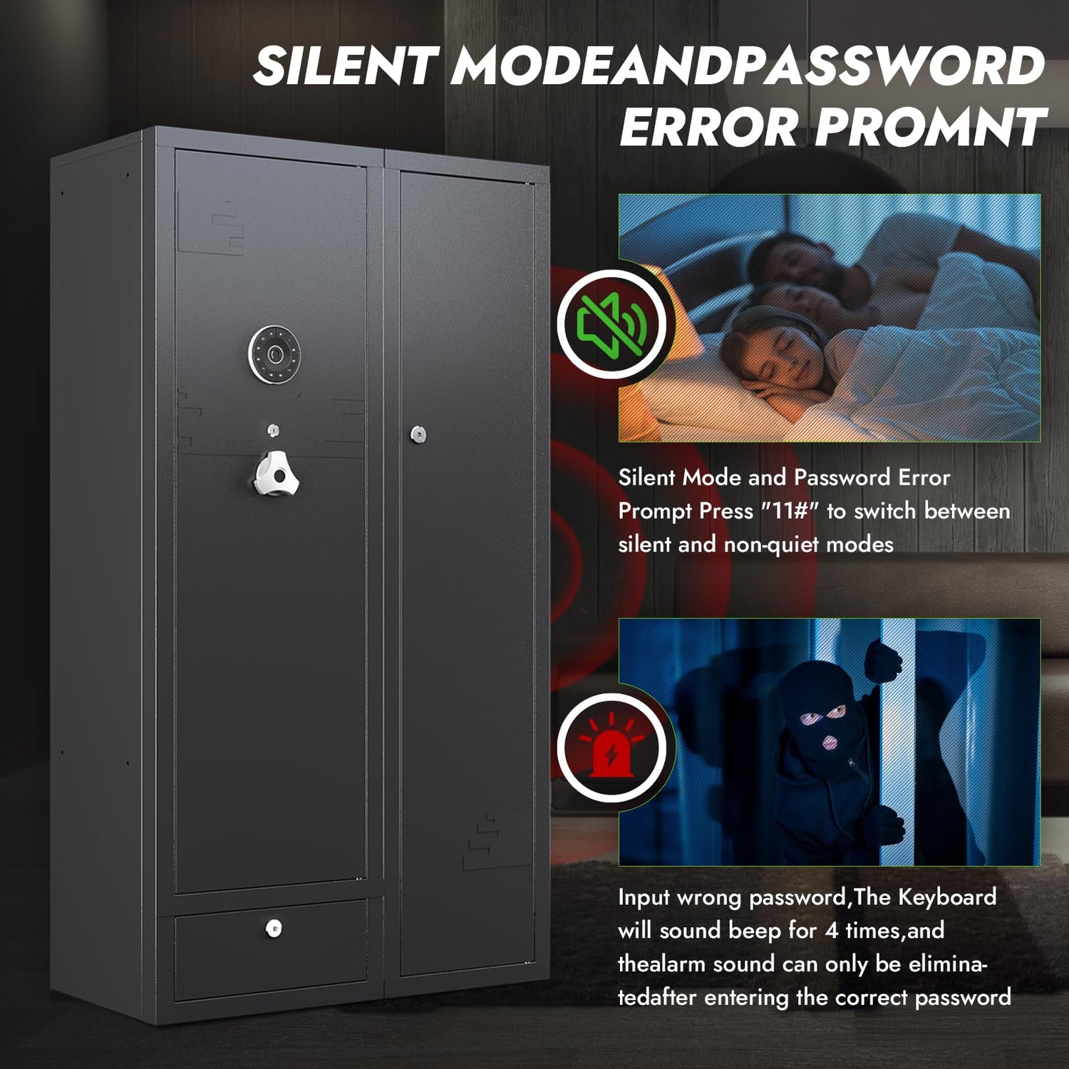 - 【Advanced Anti-Theft Alarm System】:gun safes clearance to ensure top-notch security. A loud alarm sounds after three incorrect password attempts, blocking unauthorized access and alerting you to potential threats.gun safes the sturdy locking mechanism and alarm system provide additional protection from unintended harm to your little ones
