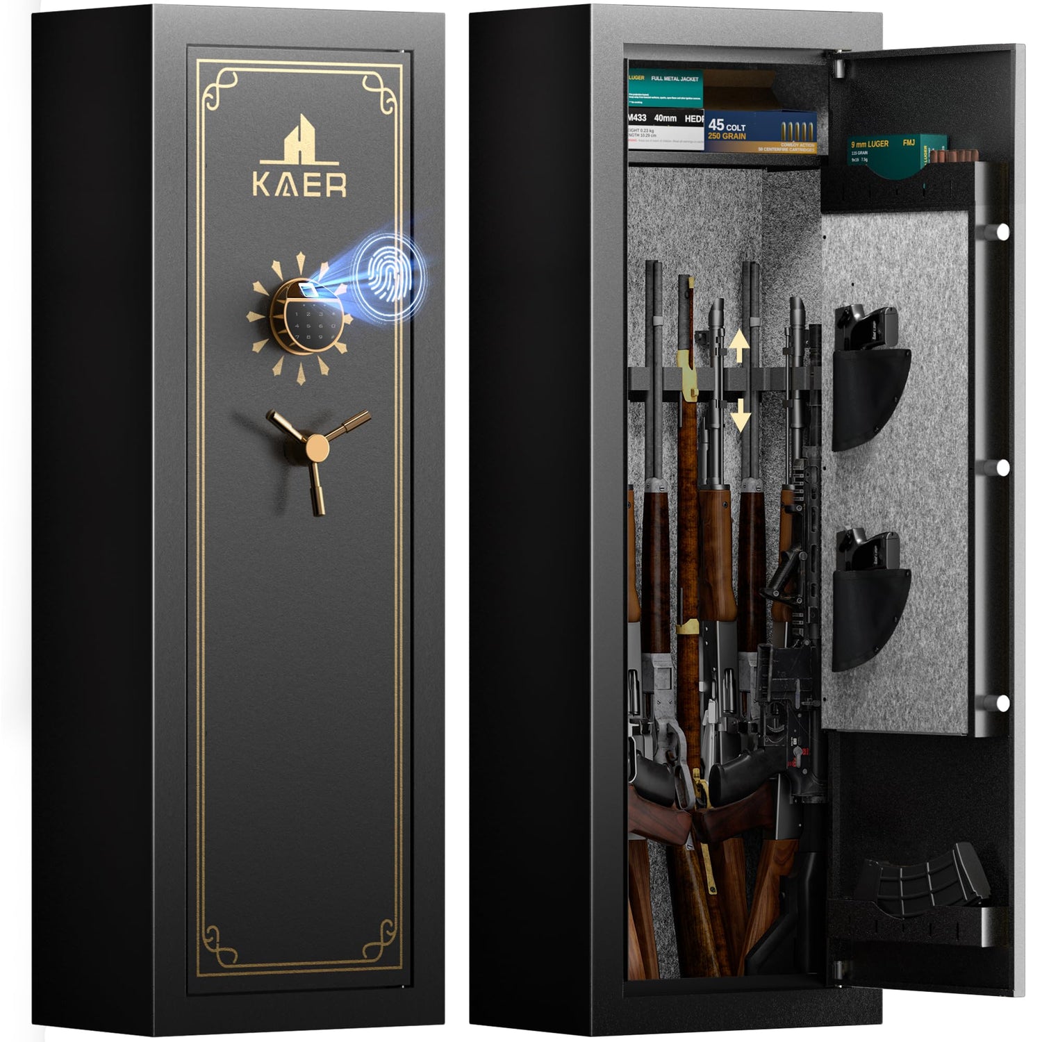 KAER 15 Biometric Gun Safe, Quick Access Fingerprint Gun Safes for Rifles and Pistols, Large Heavy-Duty Gun Cabinet for Shotguns with Removable Shelf & Gun Racks, No Assembly Required