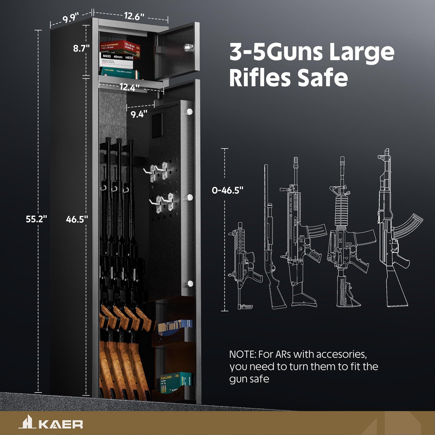 KAER 5 Gun Safe, Quick Access Gun Safe for Rifles and Pistols, Home Gun Rifle Safe with Separate Lock Box, Heavy Duty Large Gun Locker Cabinet with Hooks and Gun Rack for Shotguns, Assembled