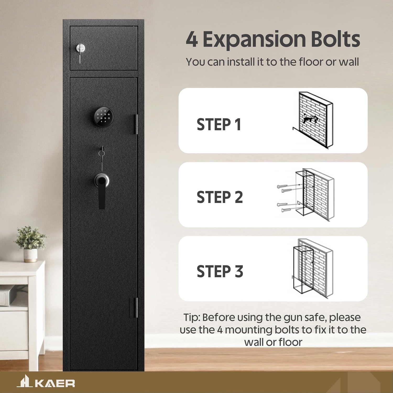- Heavy Duty Alloy Steel Gun Safe- Shotgun safe has 2.5mm thick door and 3*20mm steel locking bolt with anti-tampering and anti-pry features. This gun safe for home rifles and pistols is robust and durable, and the felt cloth inside the gun cabinet protects the gun from scratches