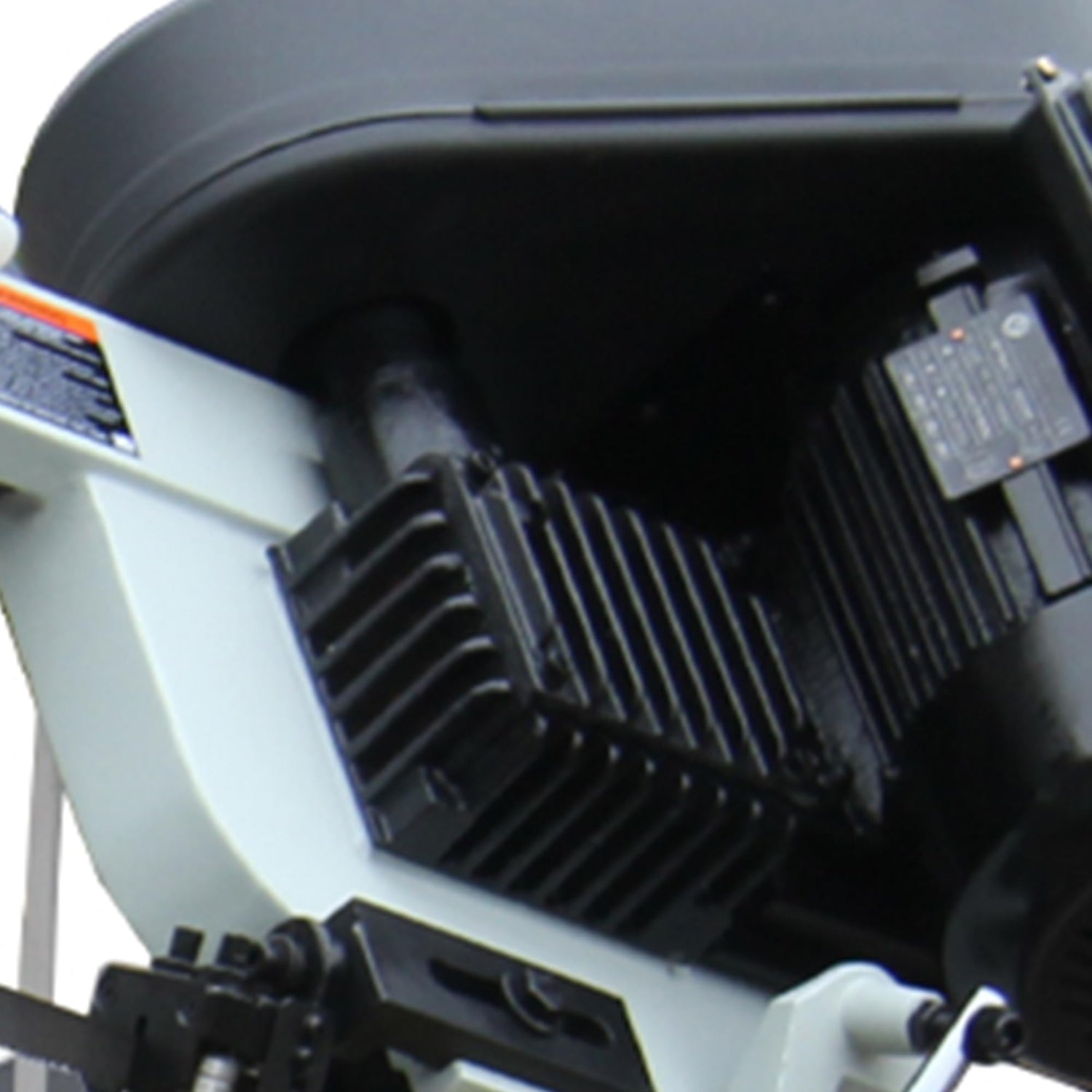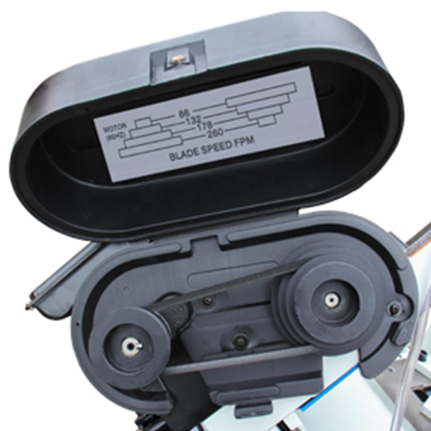 - Maximum capability 7". The belt gear has four cutting speeds. The quick clamps can be rotated from 0° to 45°. It be used both vertically and horizontally. High overload capacity motor and drive.