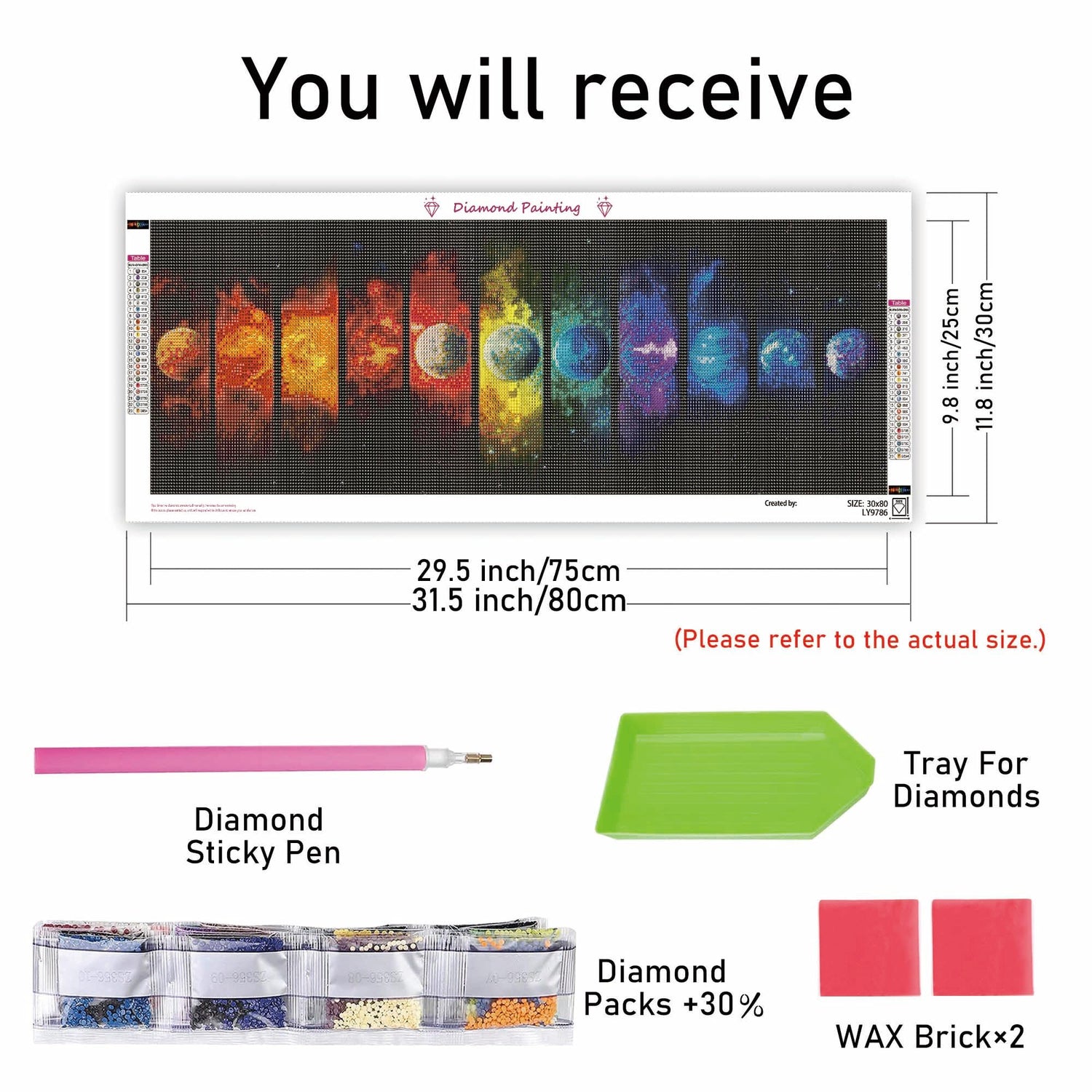 Kaliosy 5D Diamond Art Kits for Adults Planet, Large Size DIY Universe Diamond Painting Full Round Drill Crystal Art - Craft Cross Stitch Embroidery for Home Wall & Office Decor 11.81x31.5 inch