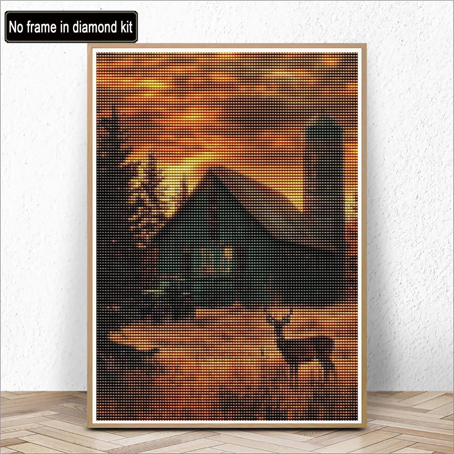 Kaliosy 5D Diamond Art Kits for Adults Sunset Landscape by Number Kits, Diamond Painting Art Moose DIY Full Drill Crystal Craft Cross Stitch Embroidery Decoration (12x16 inch) 30x40 cm