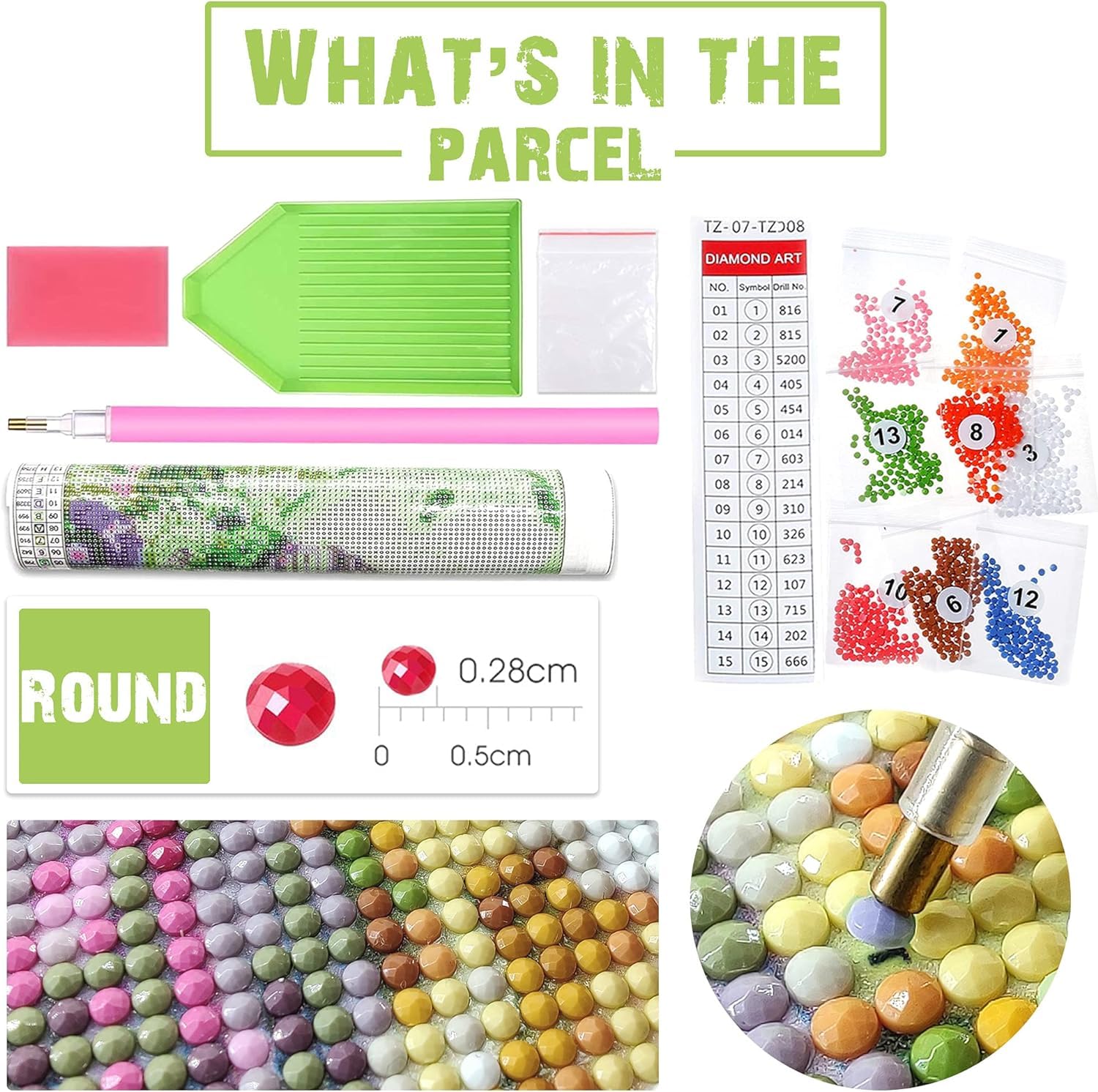 - Complete Kit, Instant Creativity: Dive into the world of diamond art painting effortlessly with our all-inclusive kit. Featuring a soft-touch canvas, vivid color-coded resin rhinestones, an easy-to-use diamond applicator, a wax pad, and a practical craft tray, it's the perfect package for instant artistic expression