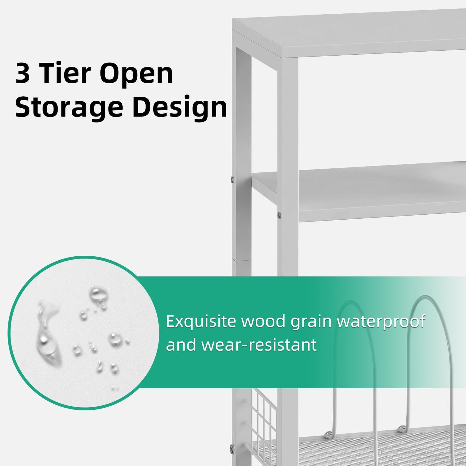 Kalrin Small Side Table, 3 Tier Moveable Small End Table, Record Player Stand with Records Shelf, Tall Nightstand for Bedroom, Living Room, Sofa, Office, Bathroom (Pure White)