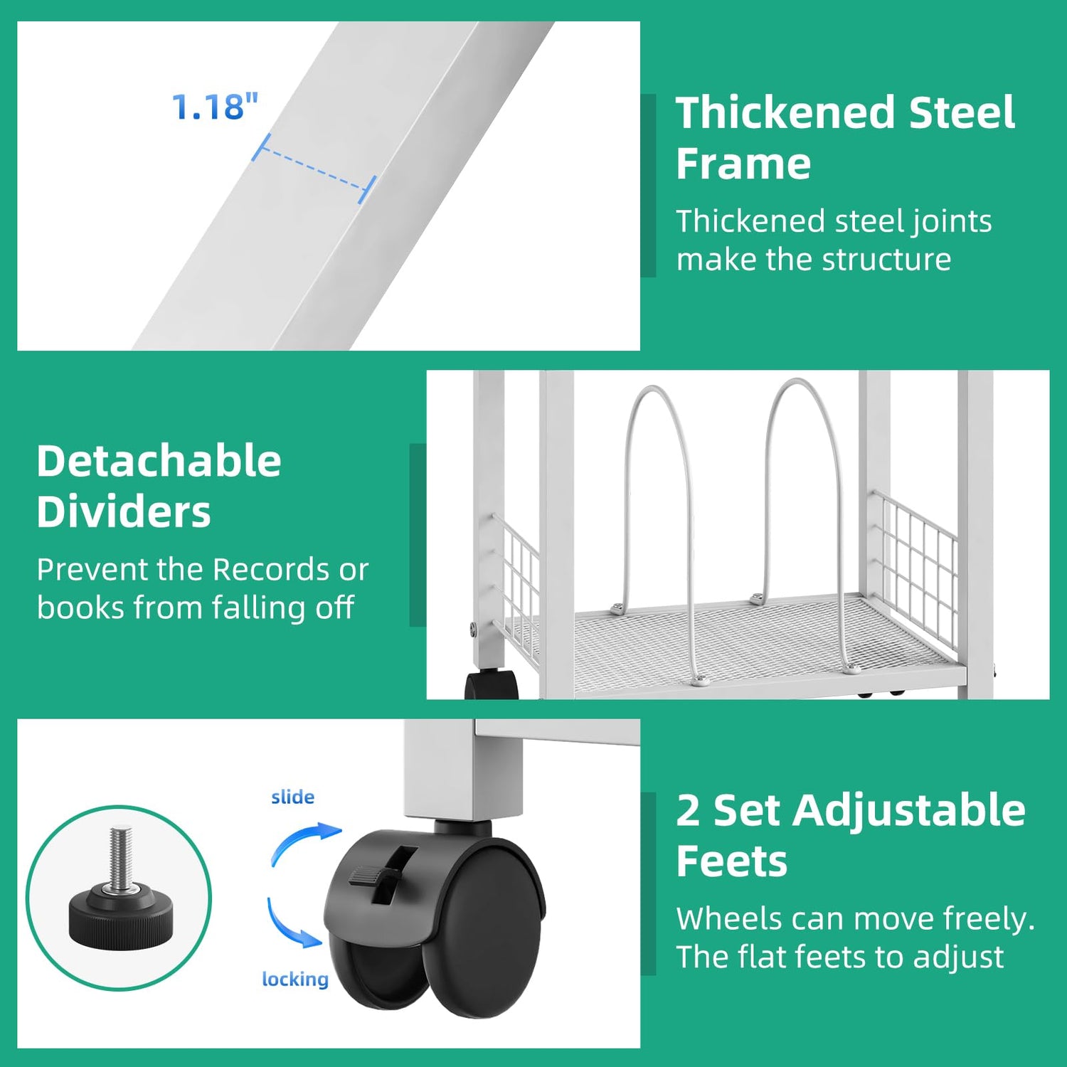 - 【Ample Storage & Versatility】With 3 spacious tiers, our side table not only accommodates various record player sizes but also offers generous storage shelf for up to 100 albums and media essentials. The removable U-shaped dividers allow for customizable organization, making it perfect as a side or end table in compact spaces.