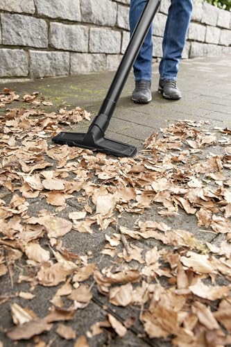 Details: Karcher’s WD 5/P Wet/Dry Vacuum Cleaner provides powerful, convenient cleaning performance. The patented semi-automatic Tact filter cleaning technology delivers unrivaled filtration for maximum productivity. The filter is housed overhead for easy, sealed access without recirculating dust, and can remain in the vacuum during both wet and dry cleaning! An onboard power tool outlet with auto start and stop delivers on-the-job, hands-free convenience. Additionally, a built-in blower quickly moves dirt and debris from hard-to-reach areas. The 1100-watt motor delivers superior air flow into 6.6 gallons (25L) of usable wet or dry capacity. Durable construction for years of use. It comes with a 11.5 ft. (3.5m) suction hose, (2x) 1.8 ft. (0.5m) suction tubes, hand nozzle, crevice nozzle, a switchable wet/dry floor nozzle, automotive style pleated filter, power tool adapter, and a fleece filter bag.
