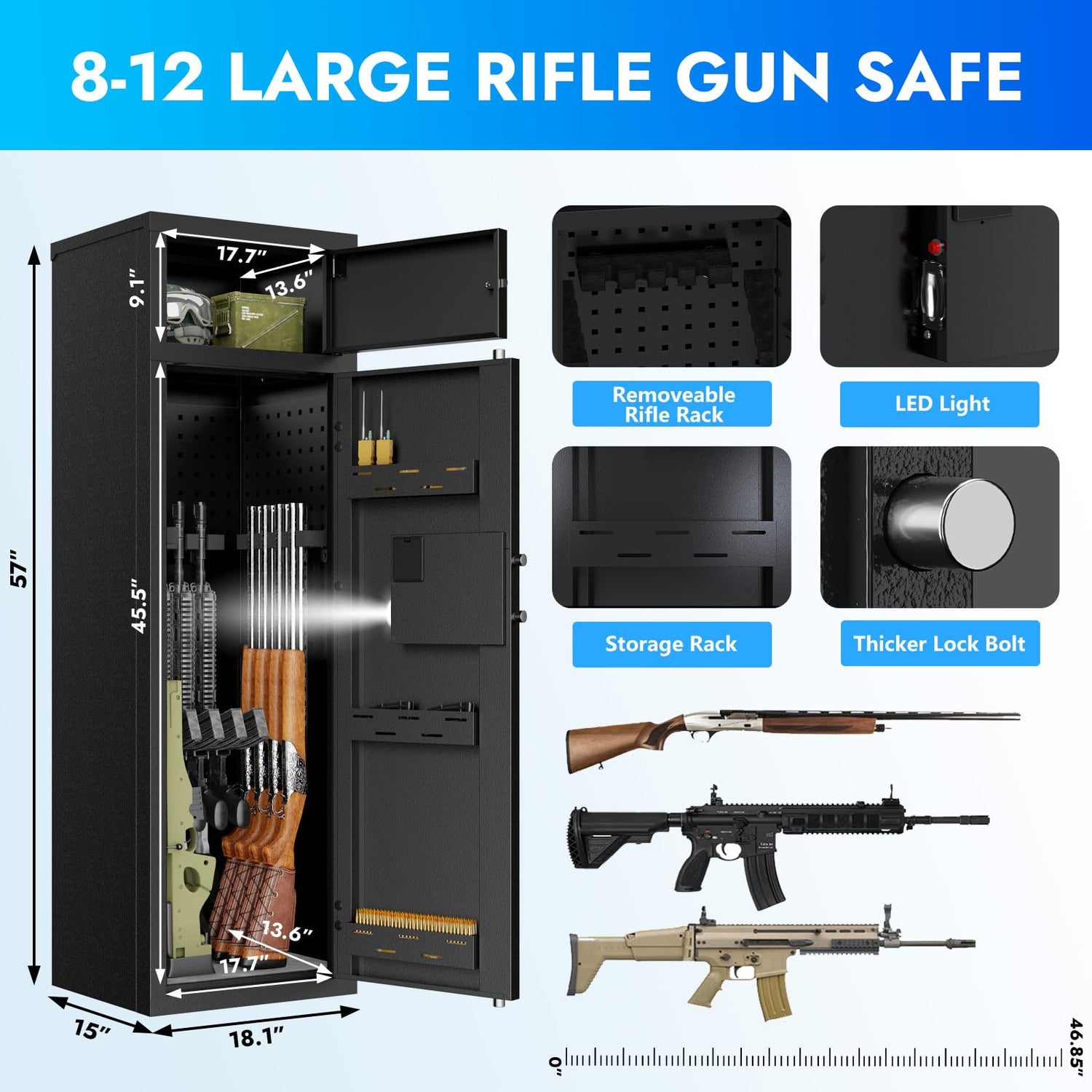 Karini 8-12 Gun Safe for Rifles and Pistols Large Rifle Safe with Electronic Combination Lock & Separate Storage 3 Removable Shelves 180° Door for Garage Bedroom & Shooting Club