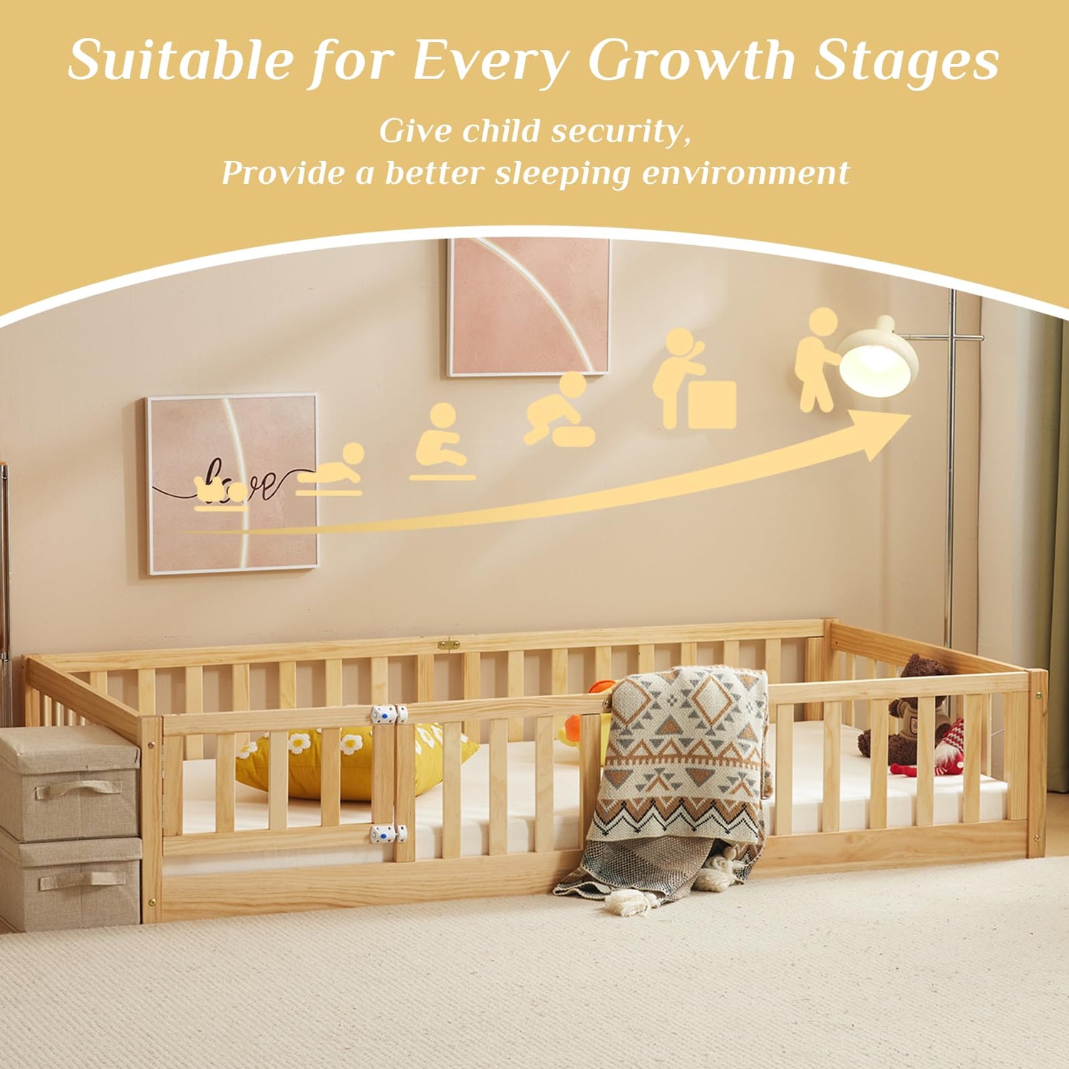 - 【Multifunctional Children's Bed】This floor fence bed is designed for children. It can be used as a bed, a space for children to play and read.