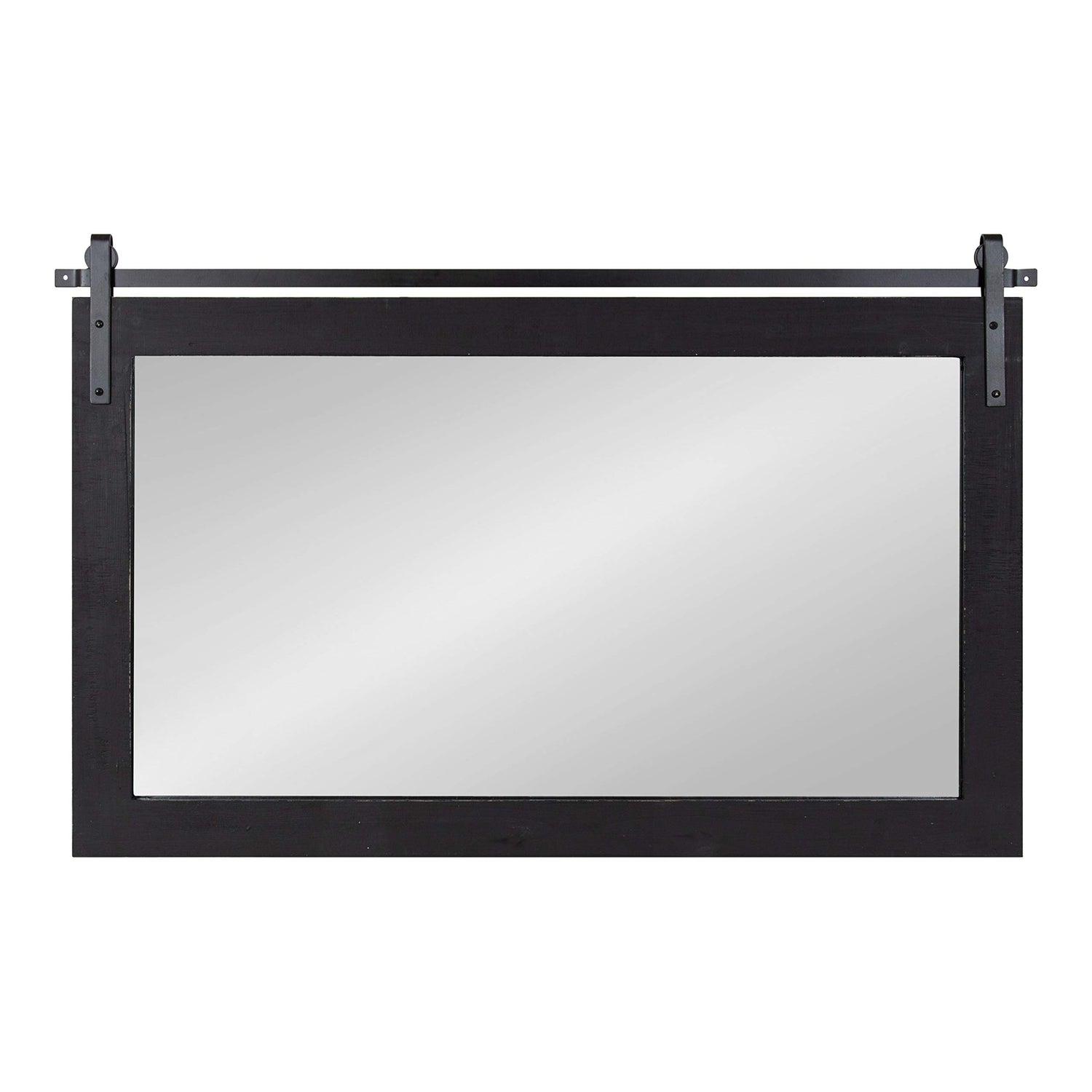 Kate and Laurel Cates Farmhouse Horizontal Wood Framed Wall Mirror, 40 x 26, Black, Barn Door-Inspired Rustic Mirrors for Wall