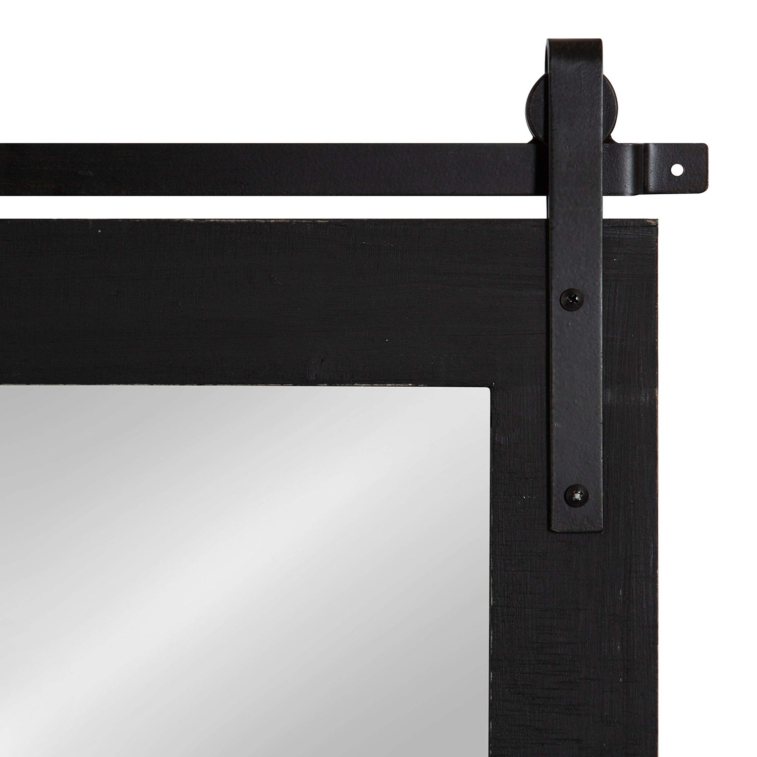 - FARMHOUSE DESIGN: The Cates mirror features a barn door-inspired design and a wide length with a one-of-a-kind distressed black finish on its frame