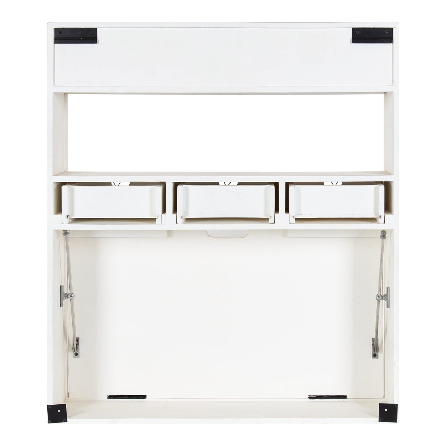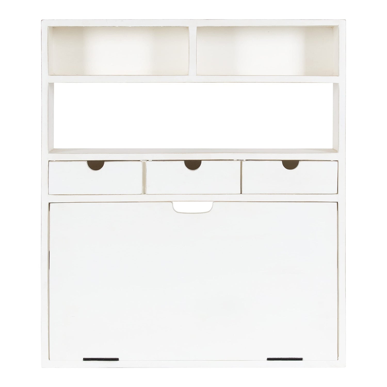Details: The Georgie desk is an excellent solution for creating a functional home office without taking up too much floor space. This modern, foldable desk features a tabletop that pulls down, plus drawers, cubbies, and shelves for display and storage. Each Georgie desk is handcrafted by skilled artisans in India out of robust mango wood and resilient iron, making each piece look distinct in woodgrain and finish. The Georgie is 26 inches wide by 6 inches deep by 30 inches tall for a compact design that doesn't take too much floor space. Each pull-out drawer is 8 inches wide by 6 inches deep by 3 inches tall, providing you individual compartments for folders or office supplies. Use the large 26-inch shelf or one of the two cubbies to decorate with keepsakes or start a library of books, binders, and folders. This desk is perfect for the person who needs a space for productivity that can easily convert back into a living room at the end of the day. Hang the robust Georgie folding desk in a matter of minutes, thanks to the sturdy Z-brackets and practical pre-drilled holes within the frame.