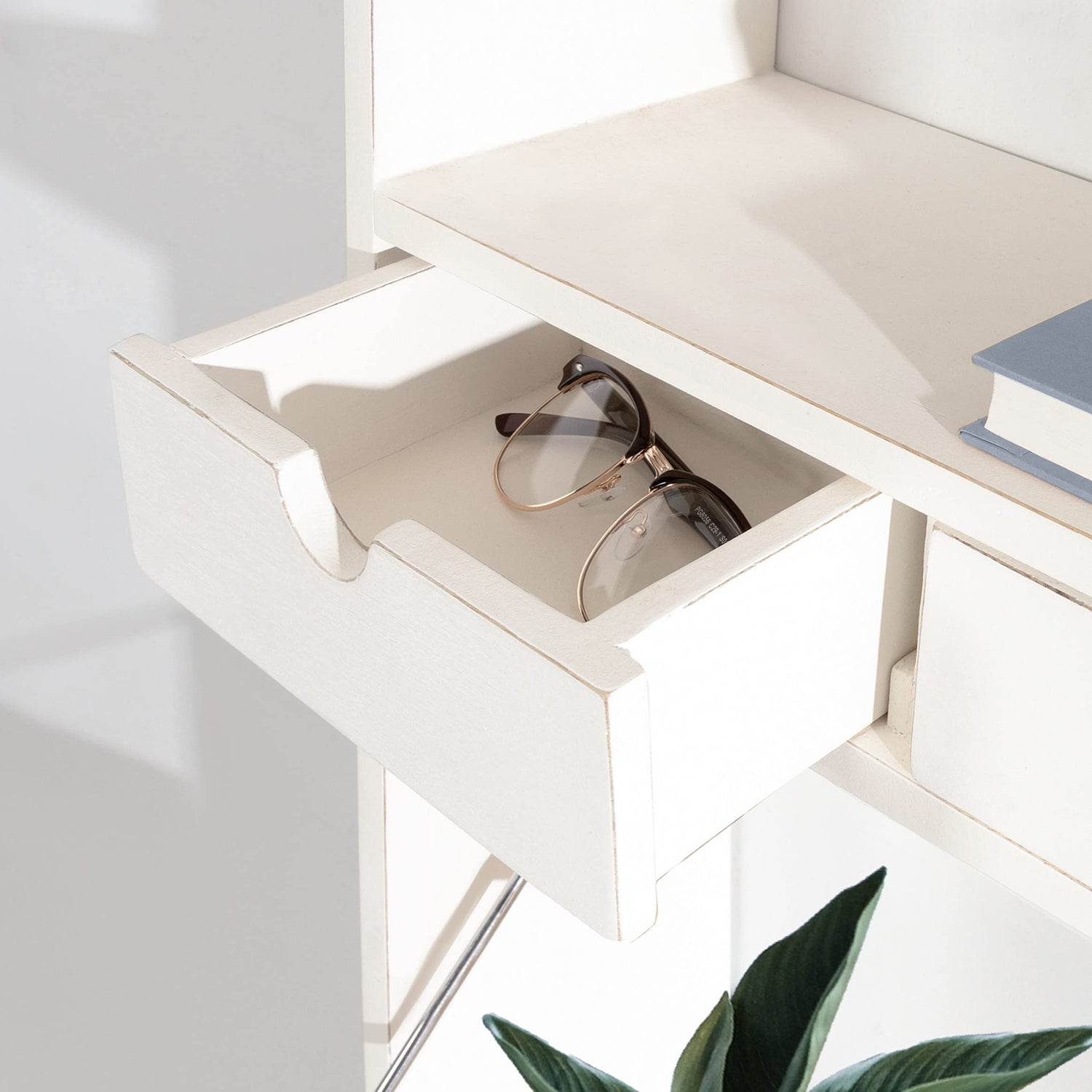 - AMPLE STORAGE: Each of the three drawers in the Georgie are 8 inches wide by 6 inches deep by 3 inches tall, plus it includes a 26-inch shelf and two open cubbies for storage or display