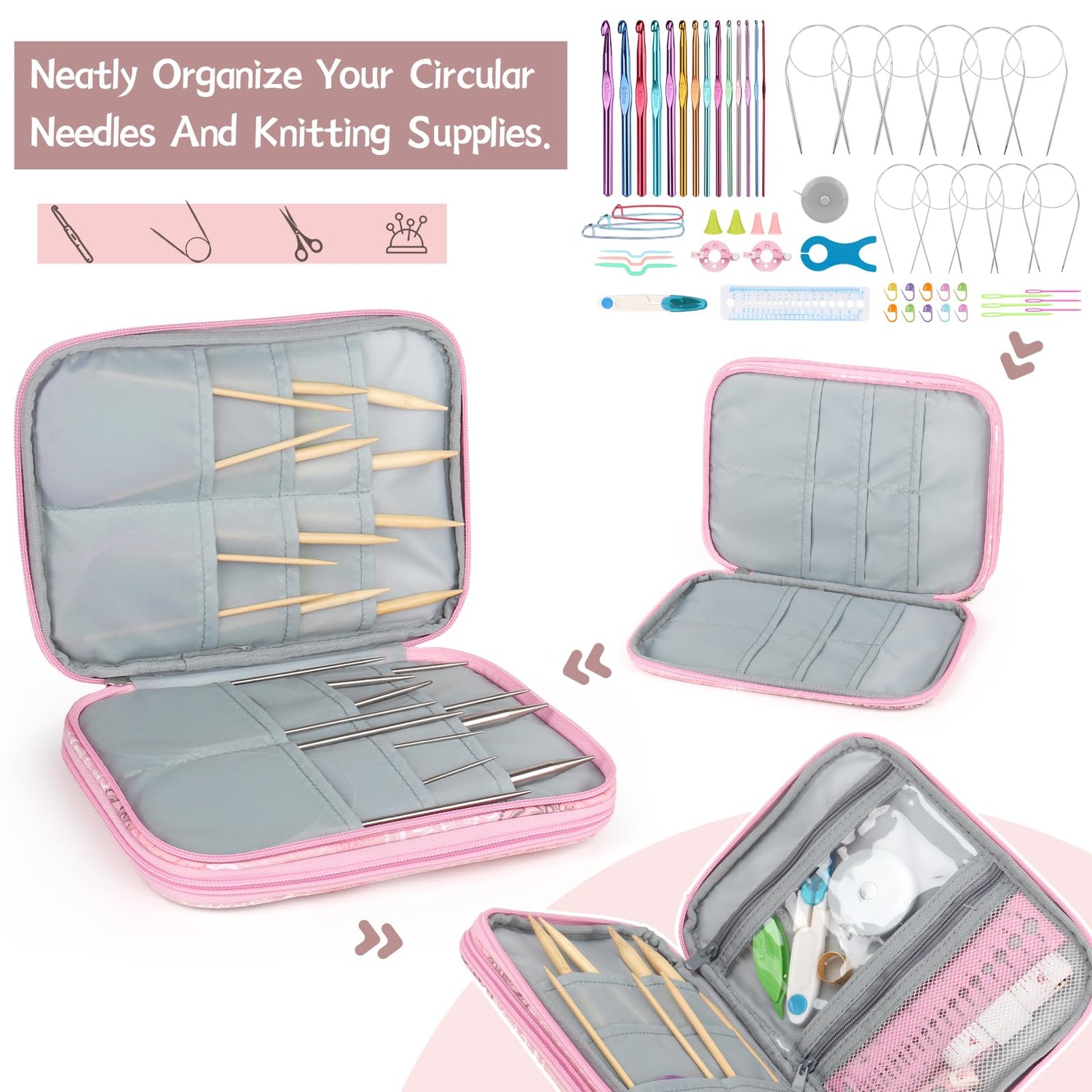 - Tailored Case for Circular Knitting Needles: The needle organizer is designed for carrying interchangeable cricular needle, compared to needle bags on the market that can only hold crochet hooks, knitting needle case with built-in padded semi-flexible cover provides excellent protection for your crochet needles and knitting accessories, good to help you store all crochet accessories neatly, stay organized, never lose anything again.
