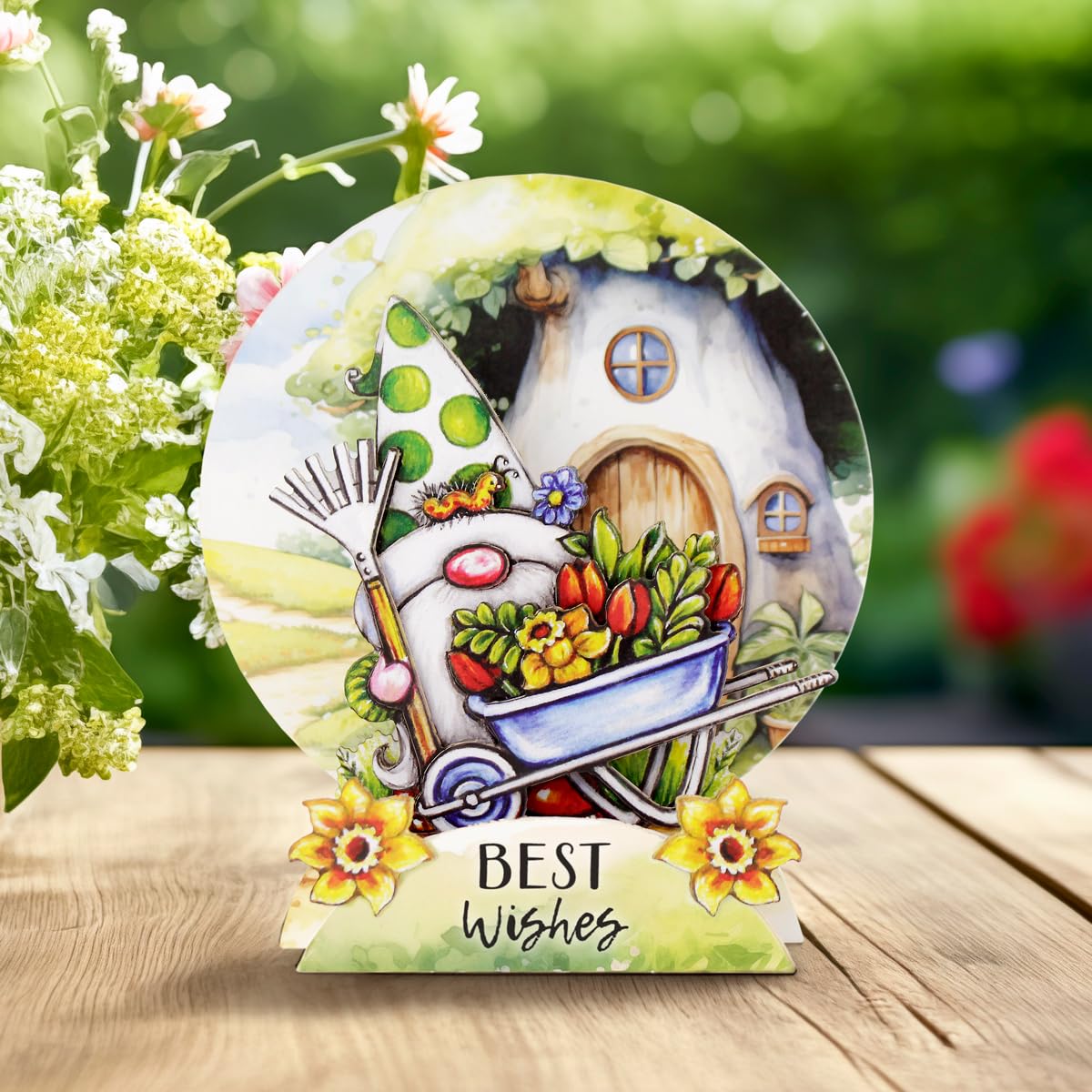 - Contained within this gnome-inspired card-making and decoupage kit are the means to create 12 unique and fun die-cut pop-up cards made with 4 gnome or gonk designs, and the right-sized envelopes for mailing. Customize your cards with your personal messages on the back of the card.