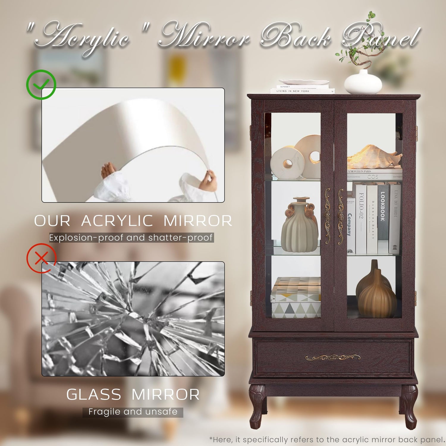 - [Turn Your Treasures into a Masterpiece] - Want your collectibles to shine? The built-in internal lighting and mirrored back panel create a stunning 360-degree display, making your items look like they belong in a gallery. Perfect for adding a touch of sophistication to your living room, dining room, or kitchen.