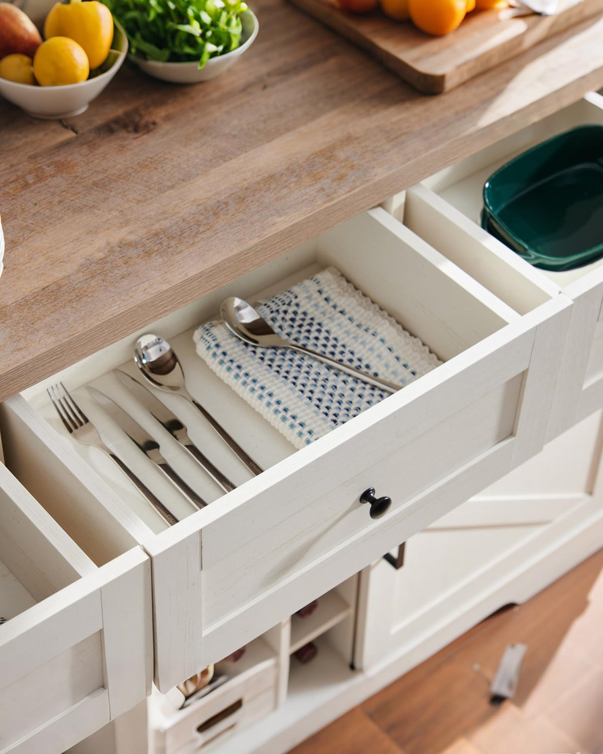 - 【Elegant Antique White Finish】 The timeless antique white finish, paired with classic farmhouse hardware, creates a warm and inviting aesthetic that complements any home decor.