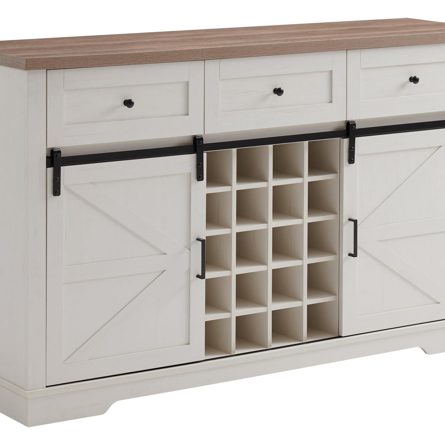 Kavonty Farmhouse Wine Bar Cabinet with Sliding Barn Door, Kitchen Coffee Bar Cabinet with Wine Rack, Storage Shelves, 3 Drawers, Large Buffet Sideboard for Dining Room, Antique White