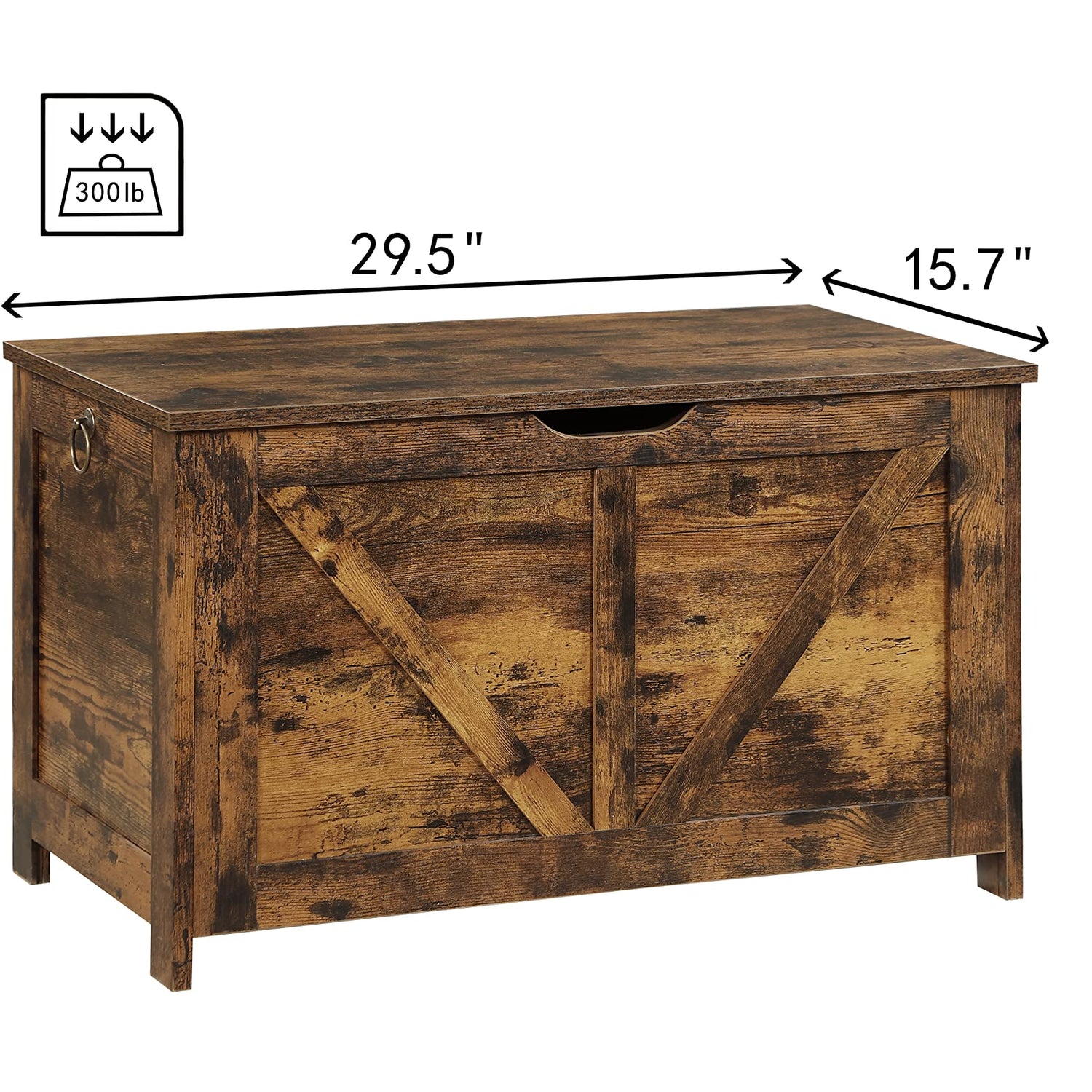 Kavonty Storage Chest, Storage Bench, Retro Toy Box Organizer with U-Shaped Cut-Out Pull, 29.5" L×15.7" W× 17.7”H, Entryway Storage Bench with 2 Hinges,Supports 300 lb, Easy Assembly, Rustic Brown