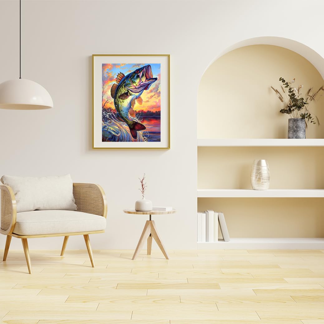 KAYEIUU Diamond Painting Kits for Adults The Fish Out of Water Diamond Art Kits for 5D Fish Gem Art Kits for Adult DIY Crafts Kits for Home Wall Decor Gifts 12x16 inch