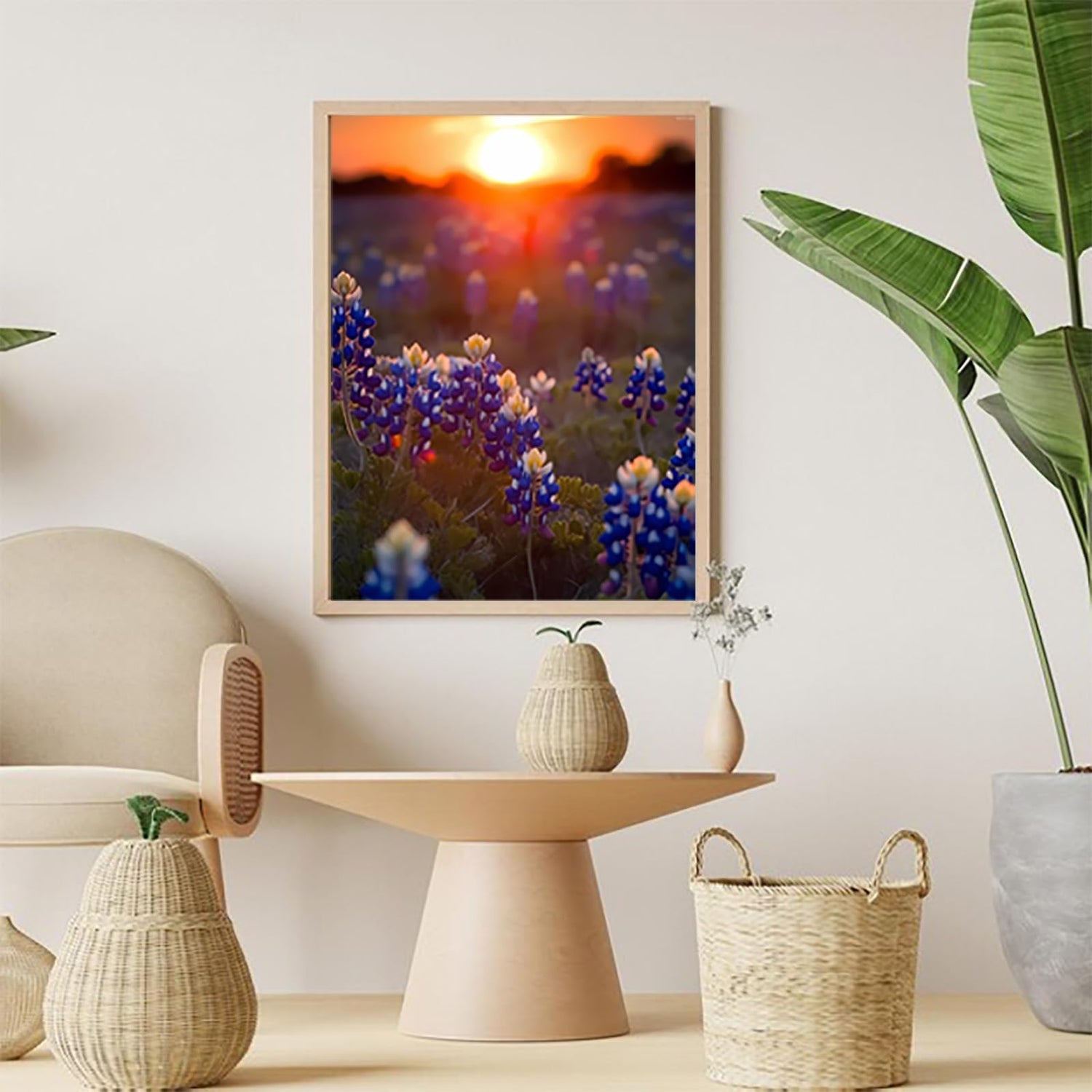 KAYEIUU DIY Bluebonnets on Field Diamond Painting Landscape Paint by Numbers for Adults Full Round Diamond Art Kits for Room Decor Living Room Decor 12x16 inch