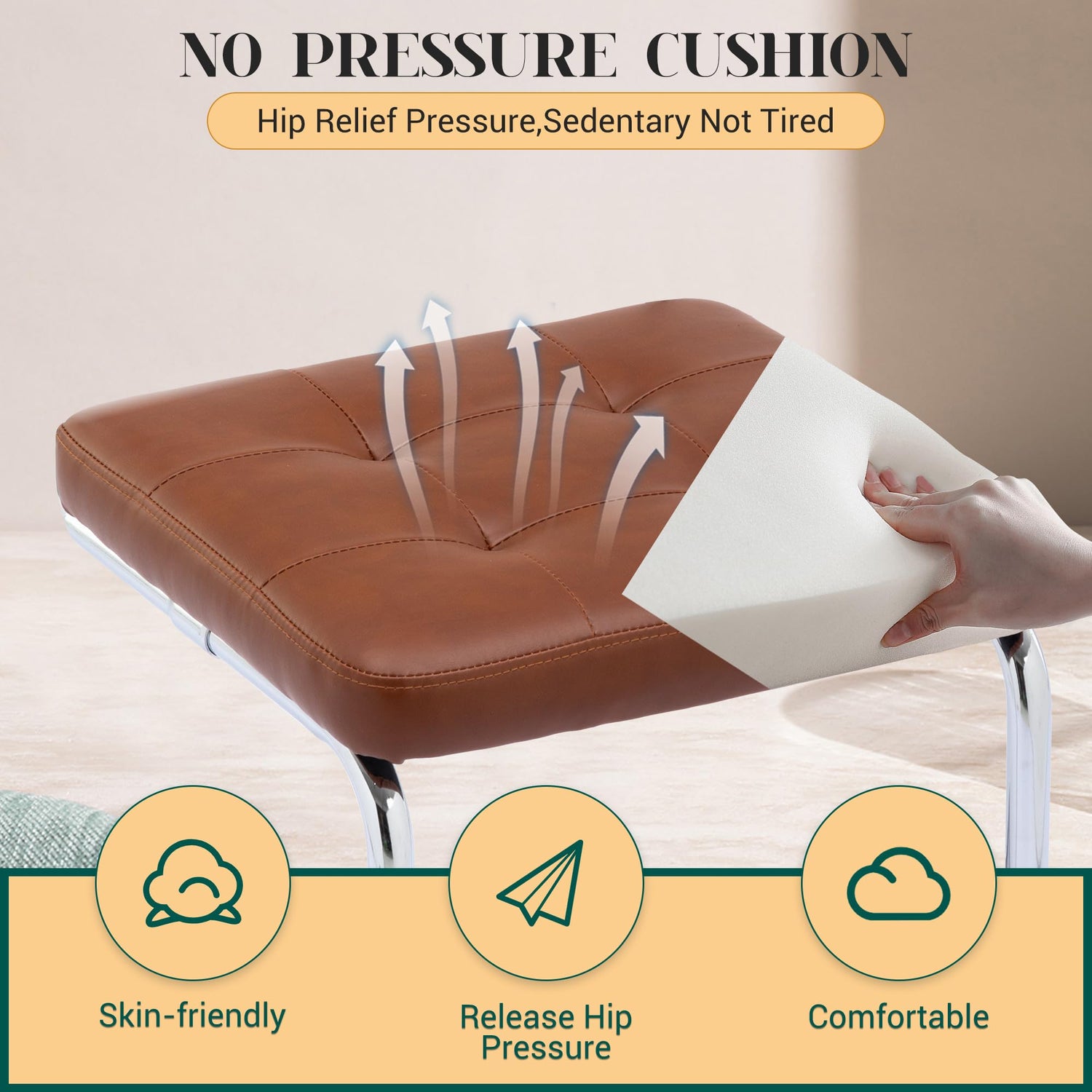 - Comfortable Seat:The cushion is decorated with faux leather and filled with high-density sponge. Feel smooth and soft, providing a day of comfort. The seat coverd by PU leather is easy to clean