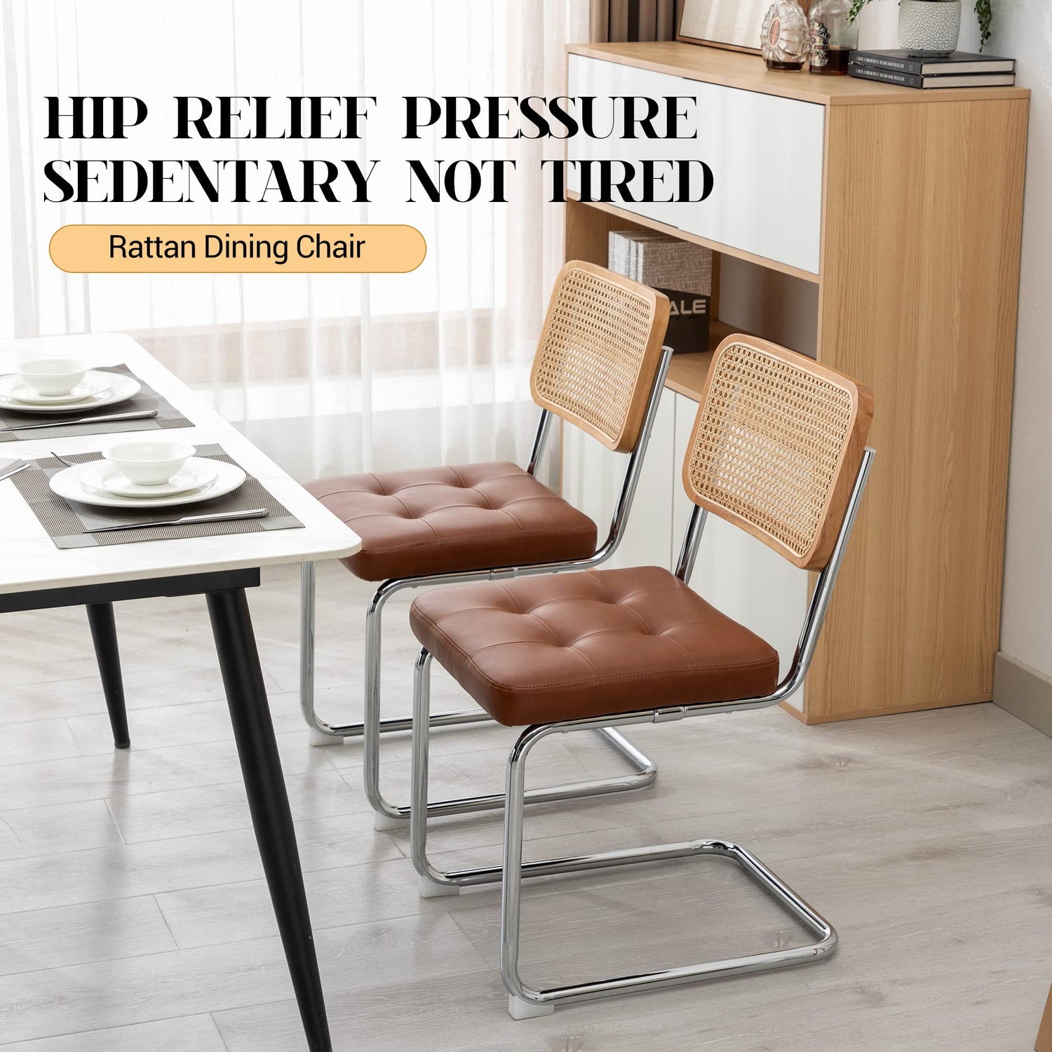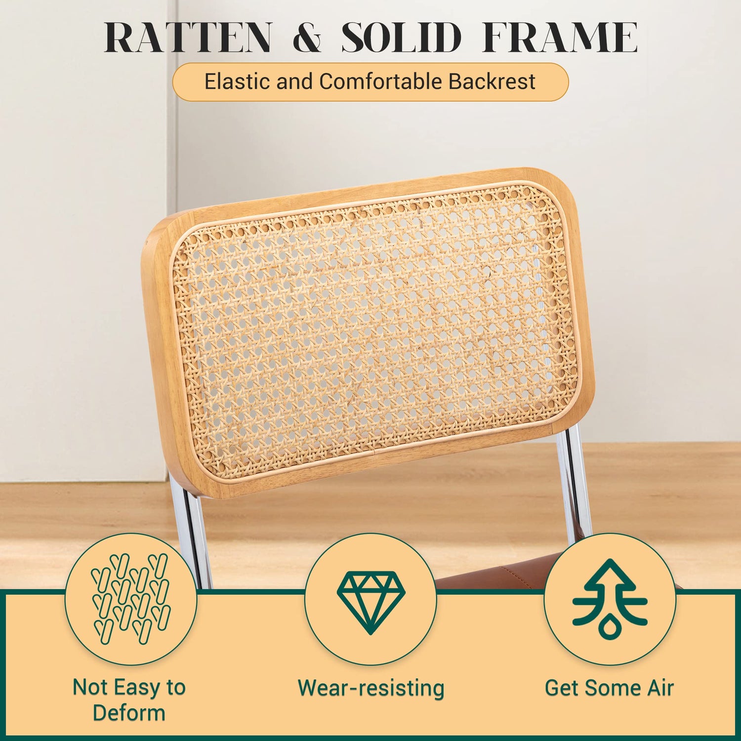 - Stylish Design: Features a classic and chic mid-century modern design-the cantilever dining chair gives the illusion of a floating seat, matching materials with soft vines, sturdy natural rubber wood and smooth chrome frames
