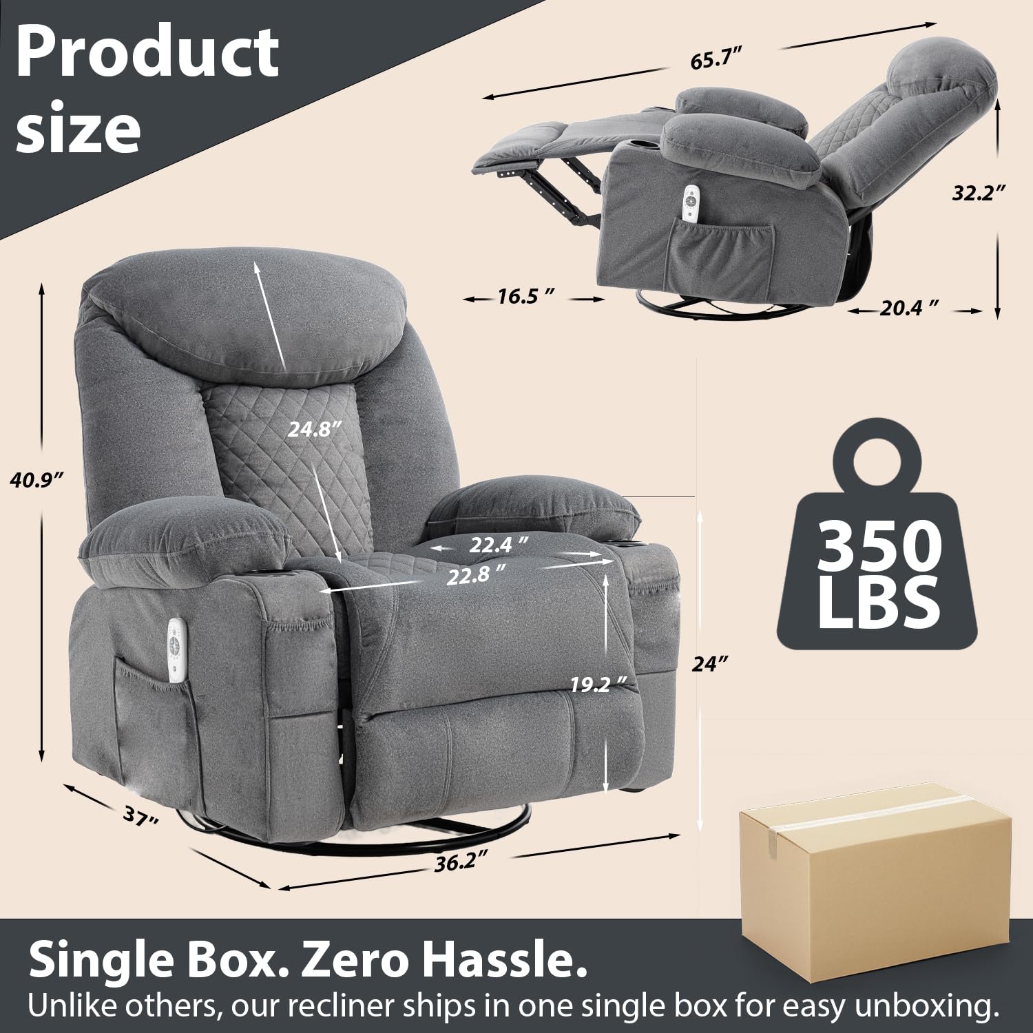 KCREAM Recliner Chair,Rocking Chair with Massage & Heat, 360° Swivel Rocking Chair for Adults, Manual Rocker Recliner with Cup Holders for Living Room, Bedroom, Nursery,Light Gray