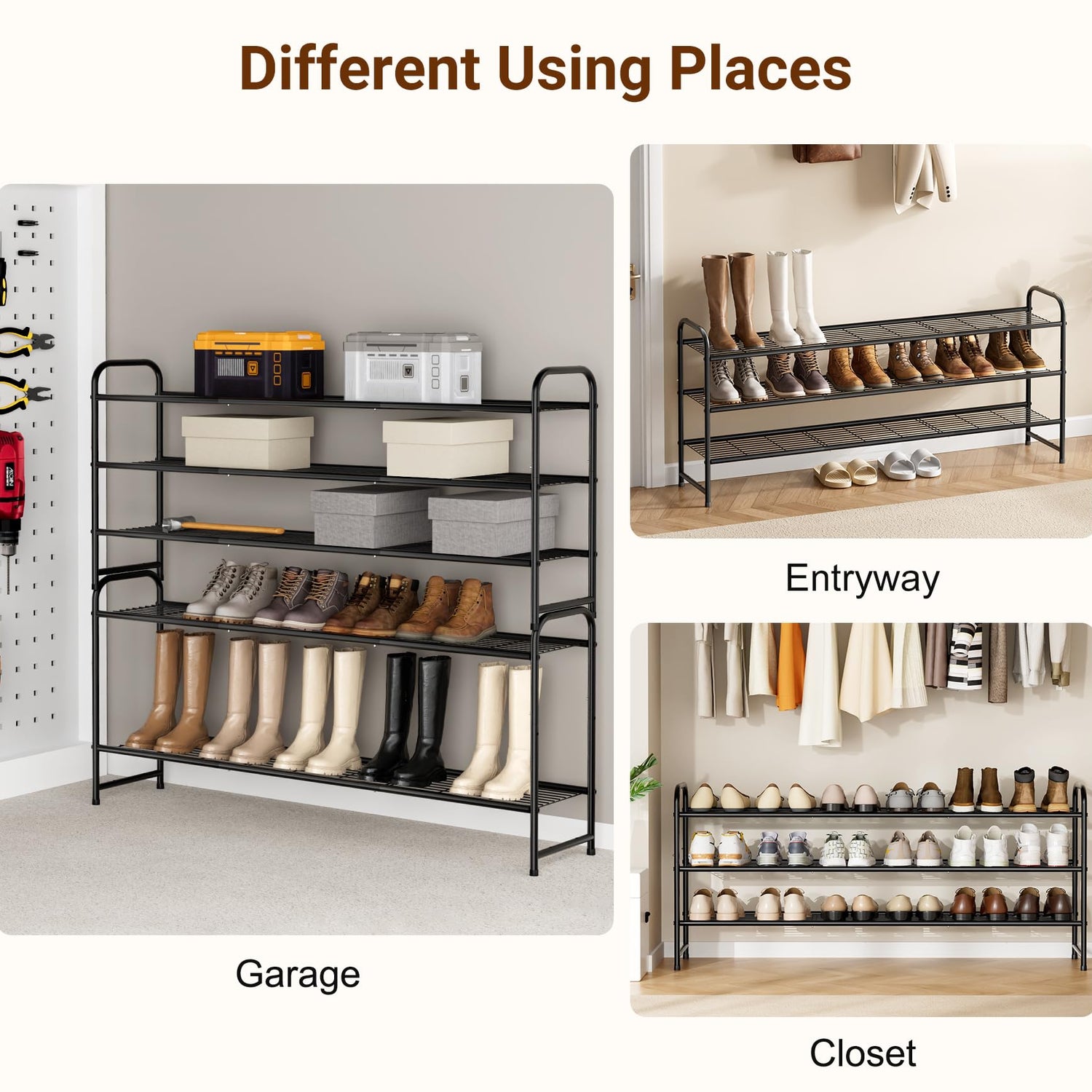 - 【Meet Multiple Needs】 The metal shoe rack also can be used in more places, such as living room, bedroom, entryway, garage, dorm, apartment, mudroom etc. This black shoe organizer is very suitable for family storage.