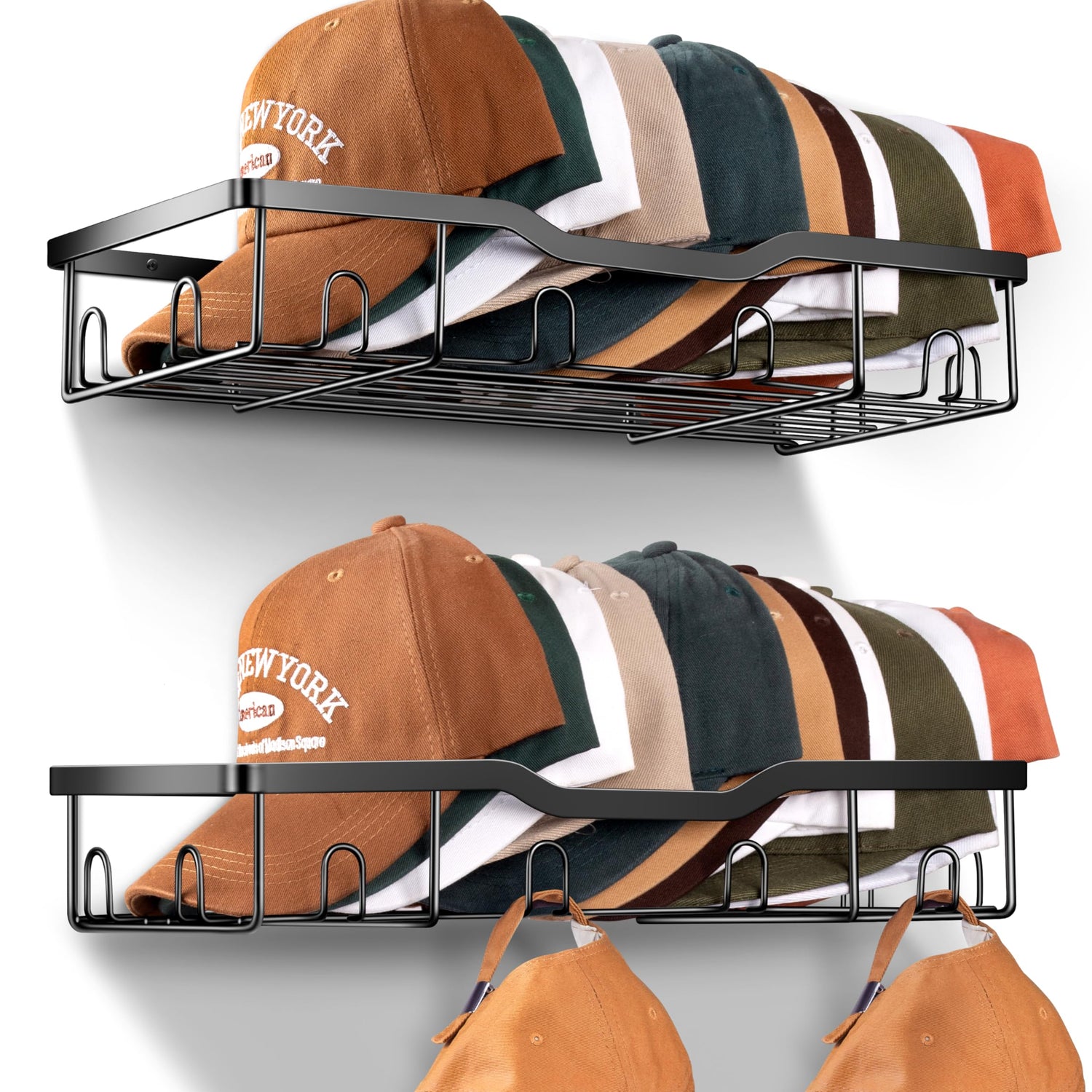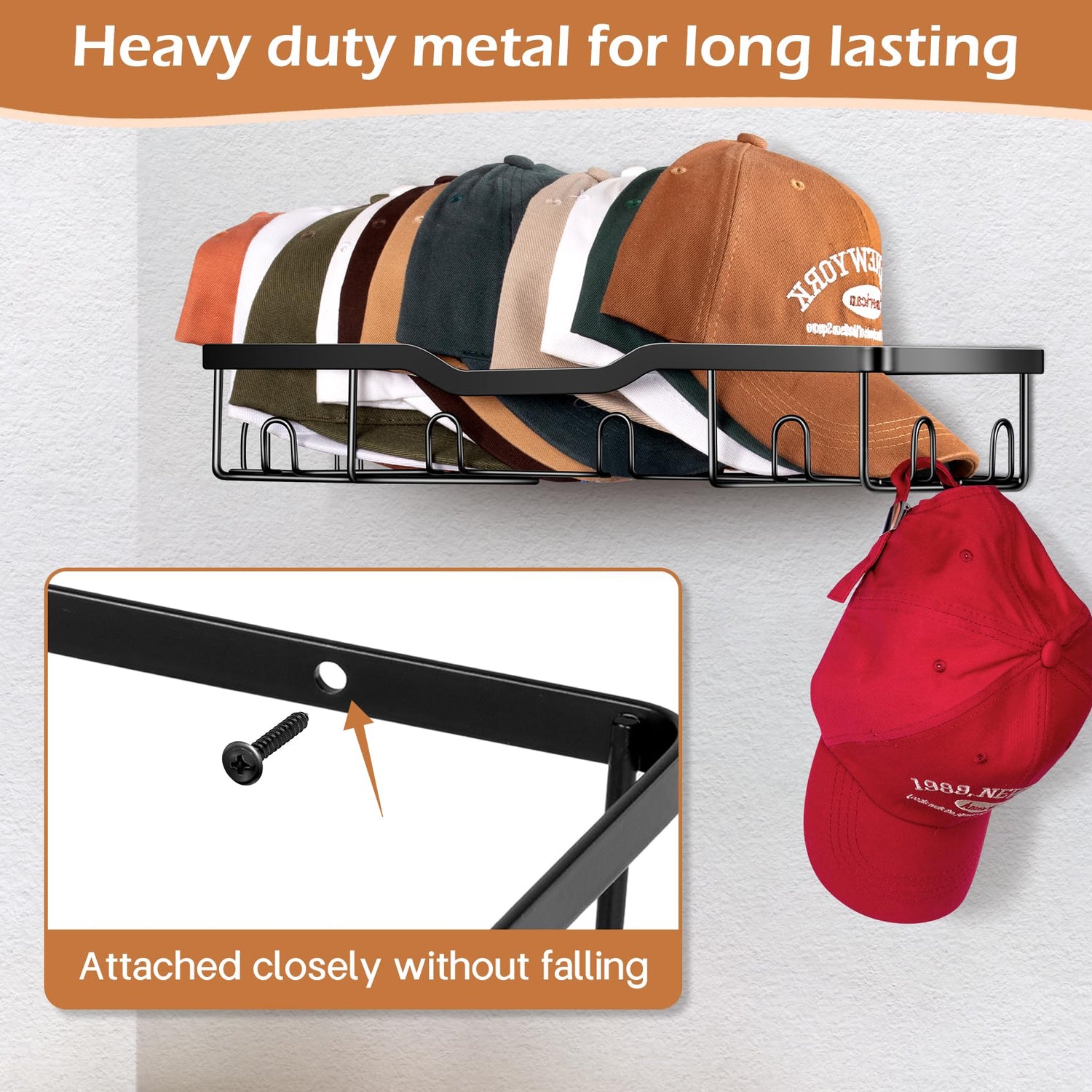KEETDY Metal Hat Racks for Baseball Caps Wall Hat Organizer Fit 20 Caps Holder, 2 Packs Sturdy Wall Mounted Hat Storage Organizer, Black, Patent: US D1,041,201 S
