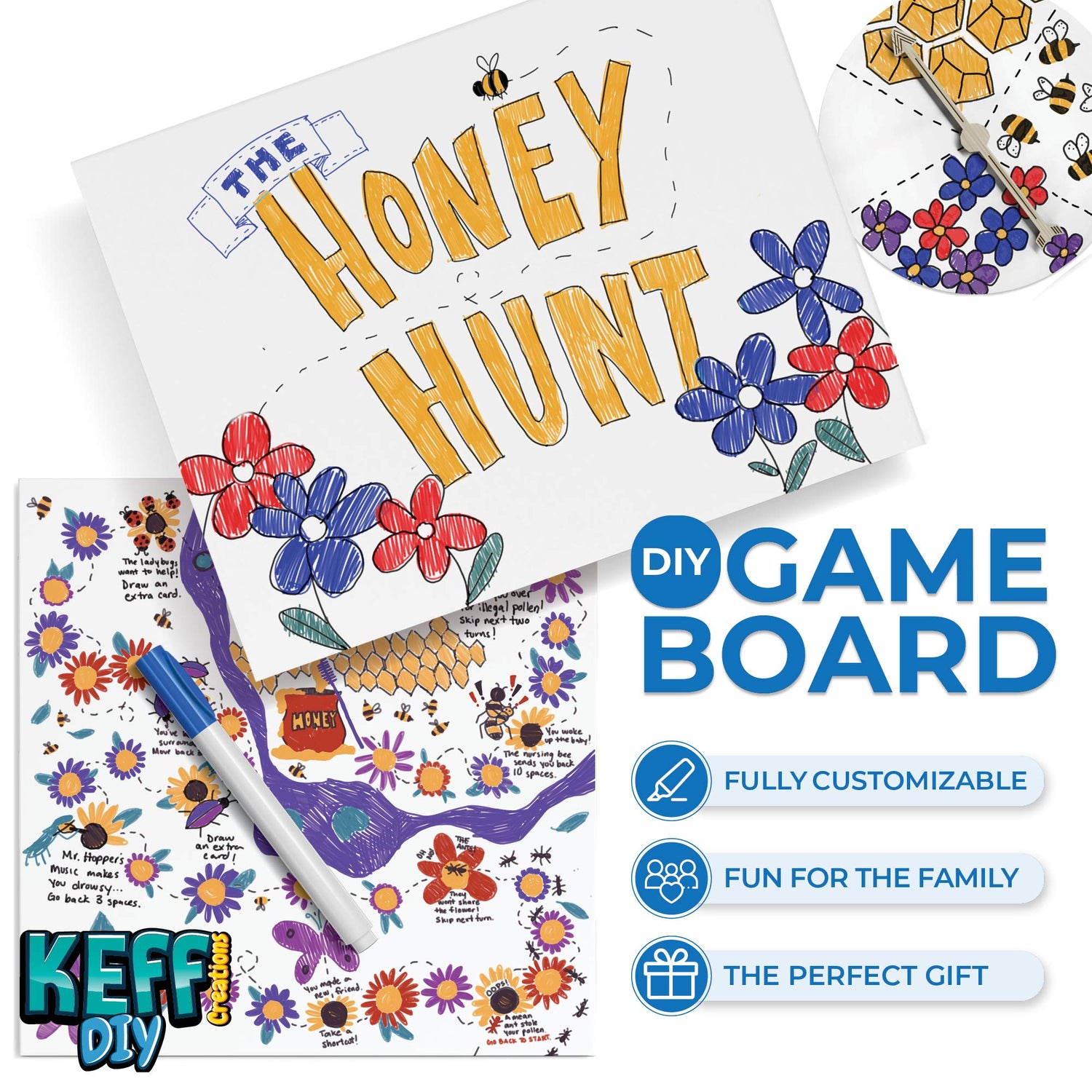 KEFF Make Your Own Board Game Set - DIY Blank Game Board Kit with Game Pieces, Blank Cards, Dice, Spinner, Pawns & More - Fun Family Board Games for Kids & Adults