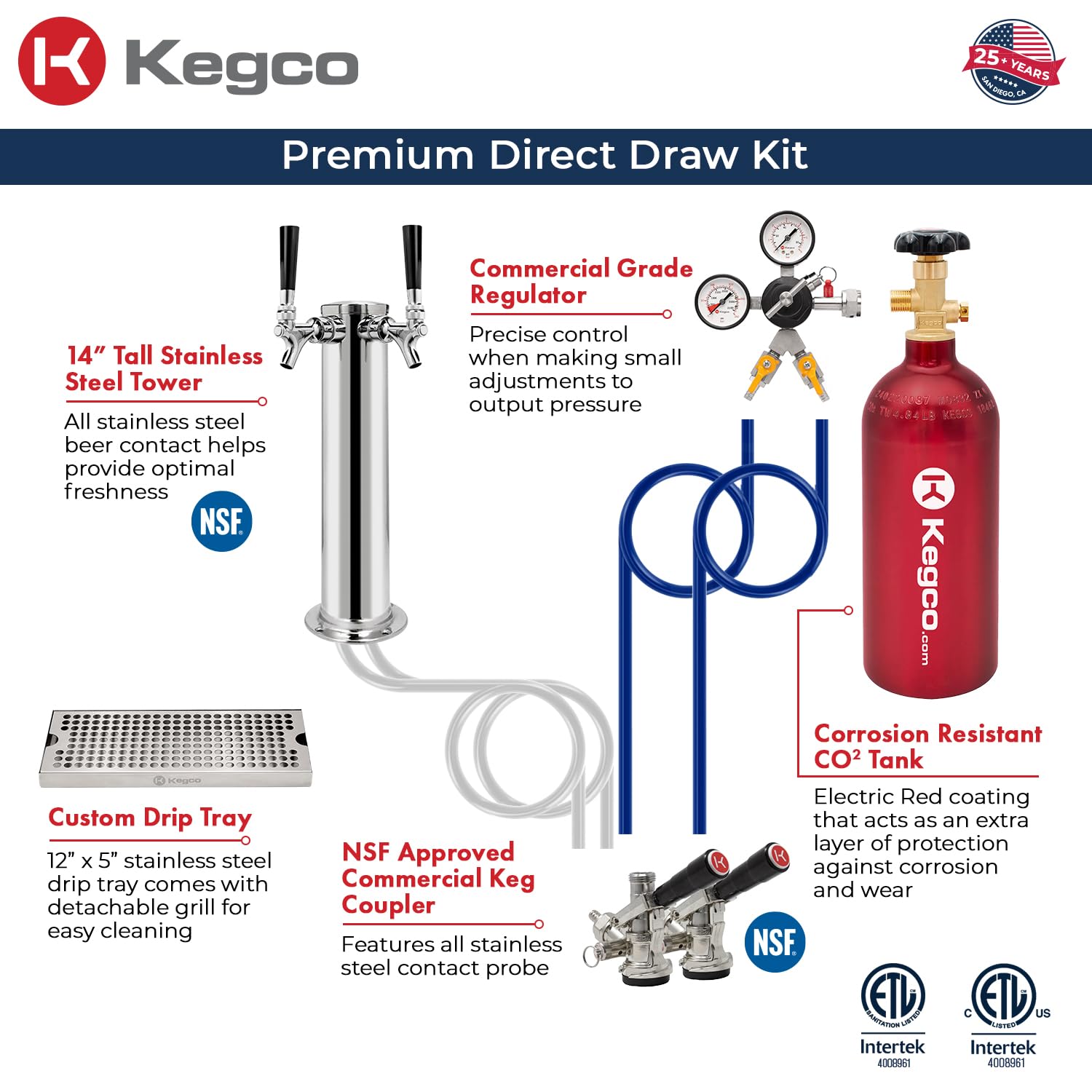 - INCLUDES 2-TAP DIRECT DRAW KIT: Premium X-CLUSIVE dispense kit includes stainless steel tower, regulator, CO2 tank, drip tray, keg couplers, and cleaning kit.