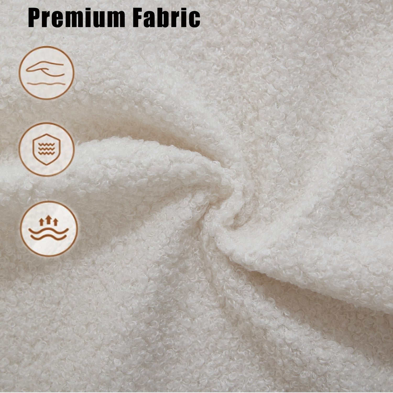 - [Luxurious Boucle Teddy Fabric] Wrapped in premium boucle teddy fabric, this sofa offers a soft, plush, and breathable texture that enhances both comfort and durability. The fabric’s anti-wrinkle and wear-resistant qualities ensure a fresh, elegant look over time. Its tactile warmth and rich texture make the sofa as visually appealing as it is inviting to the touch.