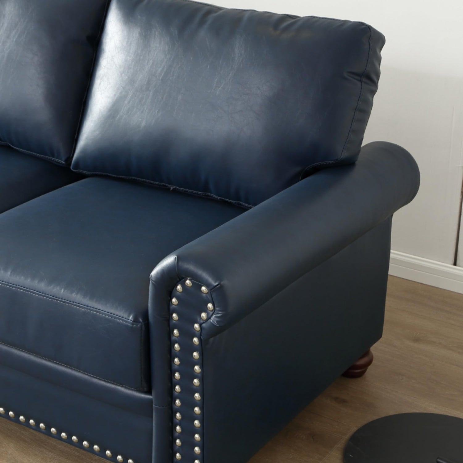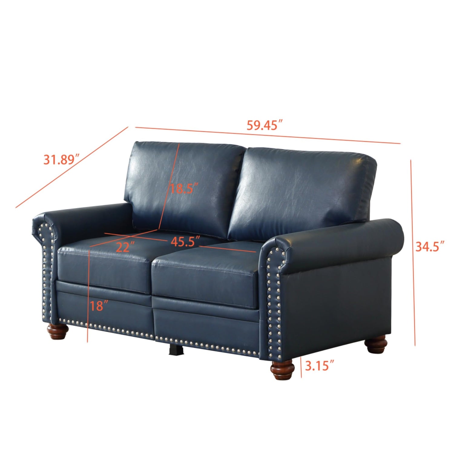 KEIKI 59.45" Chesterfield Sofa, Retro Style Upholstered Faux Leather PU Couch with Storage Space, Rolled Arm, Nailhead for Living Room Bedroom Office Apartment, Navy Blue