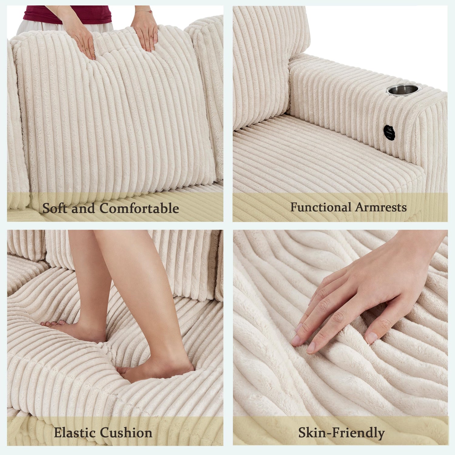 - [Luxurious Comfort] Wrapped in plush corduroy fabric, this sofa delivers a soft, cozy touch. Its thick backrests and cushions provide the ultimate relaxation for lounging or sleeping. Please note: colors may vary slightly due to lighting or monitor settings—refer to natural-light photos for a more accurate representation.