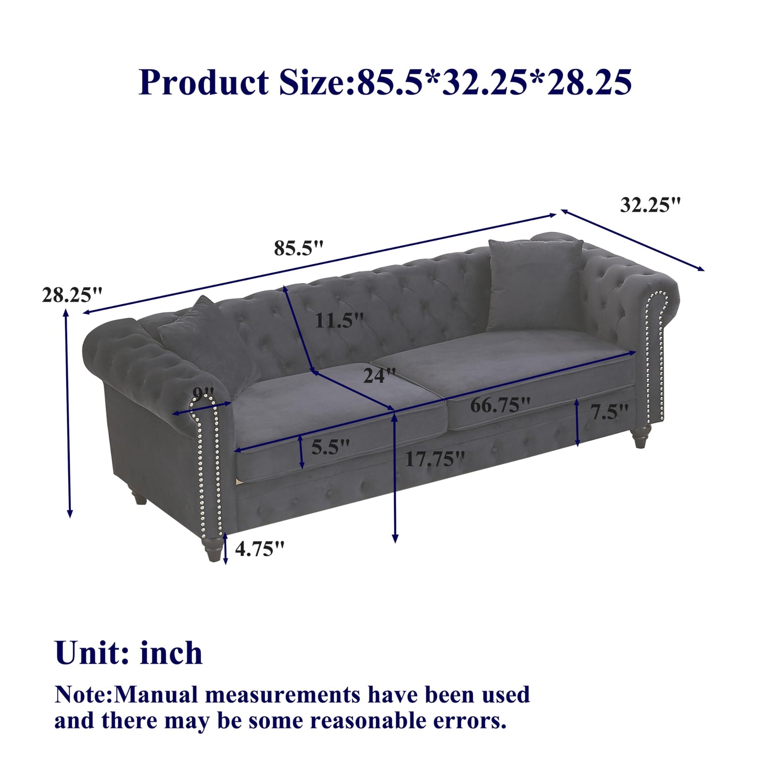 KEIKI 85.5" Chesterfield Sofa, Retro Style Velvet Upholstered 3 Seat Couch, Button Tufted Sofa with Rolled Arm for Living Room, Bedroom Office, Black