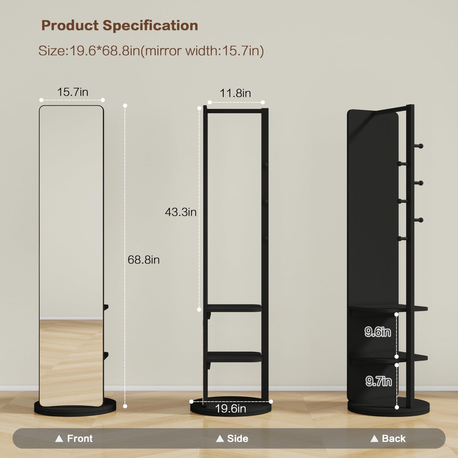 - [Full Size & Multi-functional Design]: 68.8"x19.6" full-length mirror with integrated coat rack and shelf, combining reflection, storage, and decor in one stylish piece for your bedroom, living room, or cloakroom.