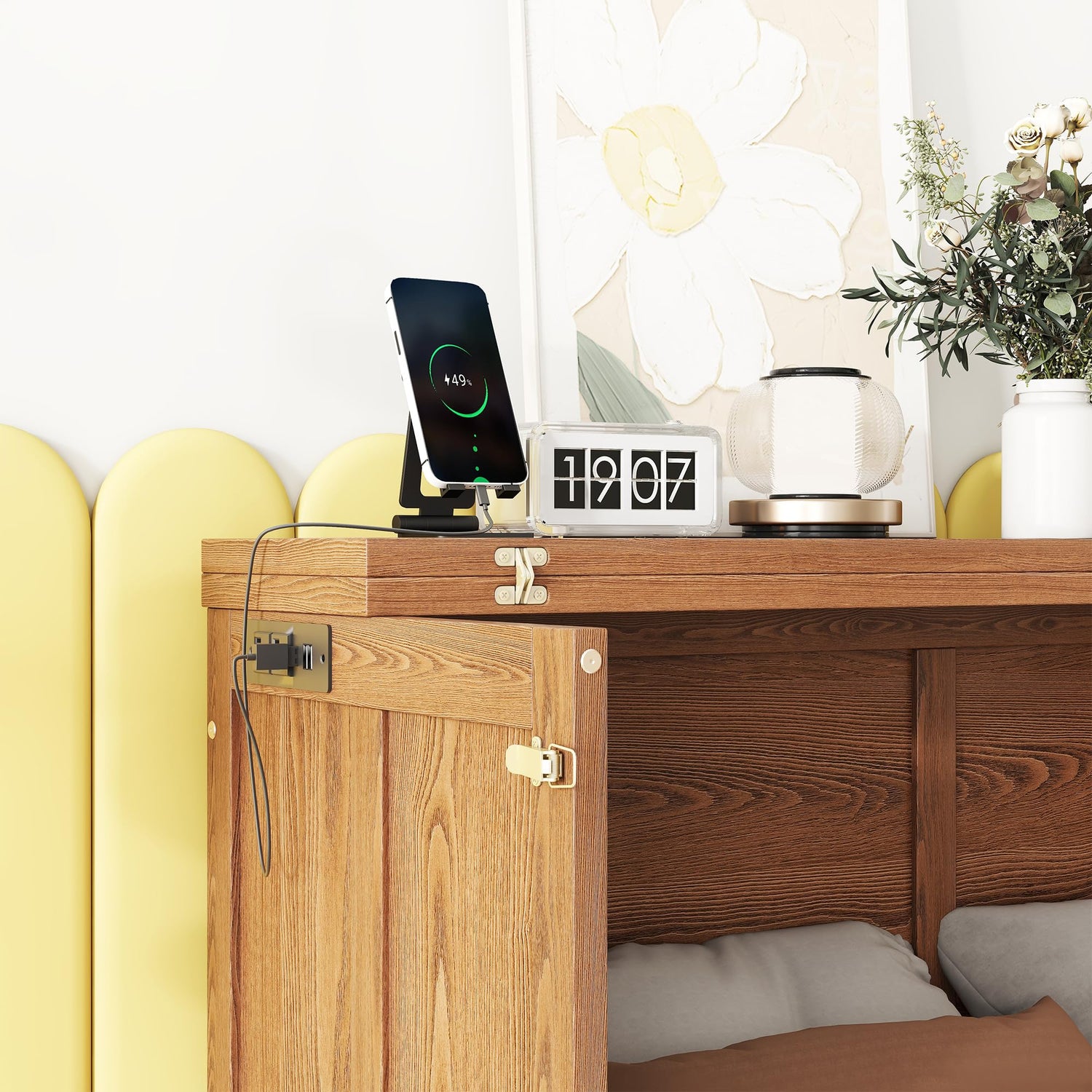 Murphy Bed Cabinet Full with Storage Drawer and Charging Station, USB Port